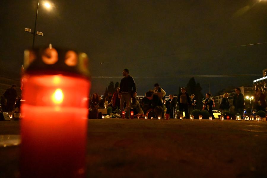 Η αποψινή συγκέντρωση για την τραγωδία στα Τέμπη στο Σύνταγμα, κορυφώθηκε με συγγενείς των θυμάτων να γράφουν ξανά τα ονόματα, με κόκκινη μπογιά, μπροστά από τη Βουλή.