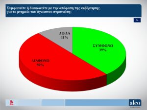 Στην ερώτηση για το αν συμφωνούν ή διαφωνούν με την κυβερνητική απόφαση για τον Άγνωστο Στρατιώτη, 50% των πολιτών δηλώνει διαφωνία, 39% συμφωνεί και 11% απαντά «δεν ξέρω/δεν απαντώ».