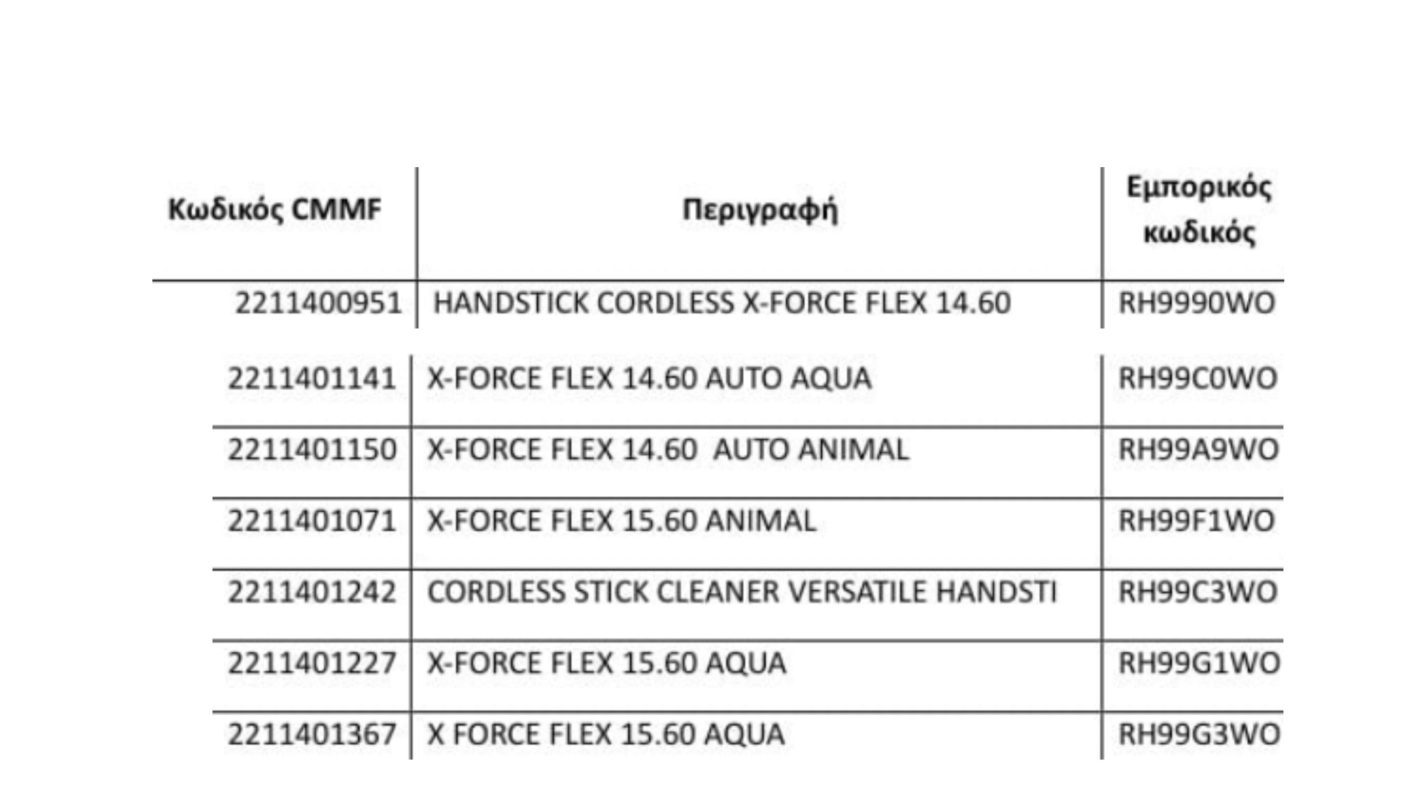 Ειδικότερα, το πρόγραμμα εθελοντικής ανάκλησης αφορά τις ηλεκτρικές σκούπες ROWENTA X-Force 14.60 και X-Force 15.60, που κατασκευάστηκαν πριν από την εβδομάδα 49 του 2024.