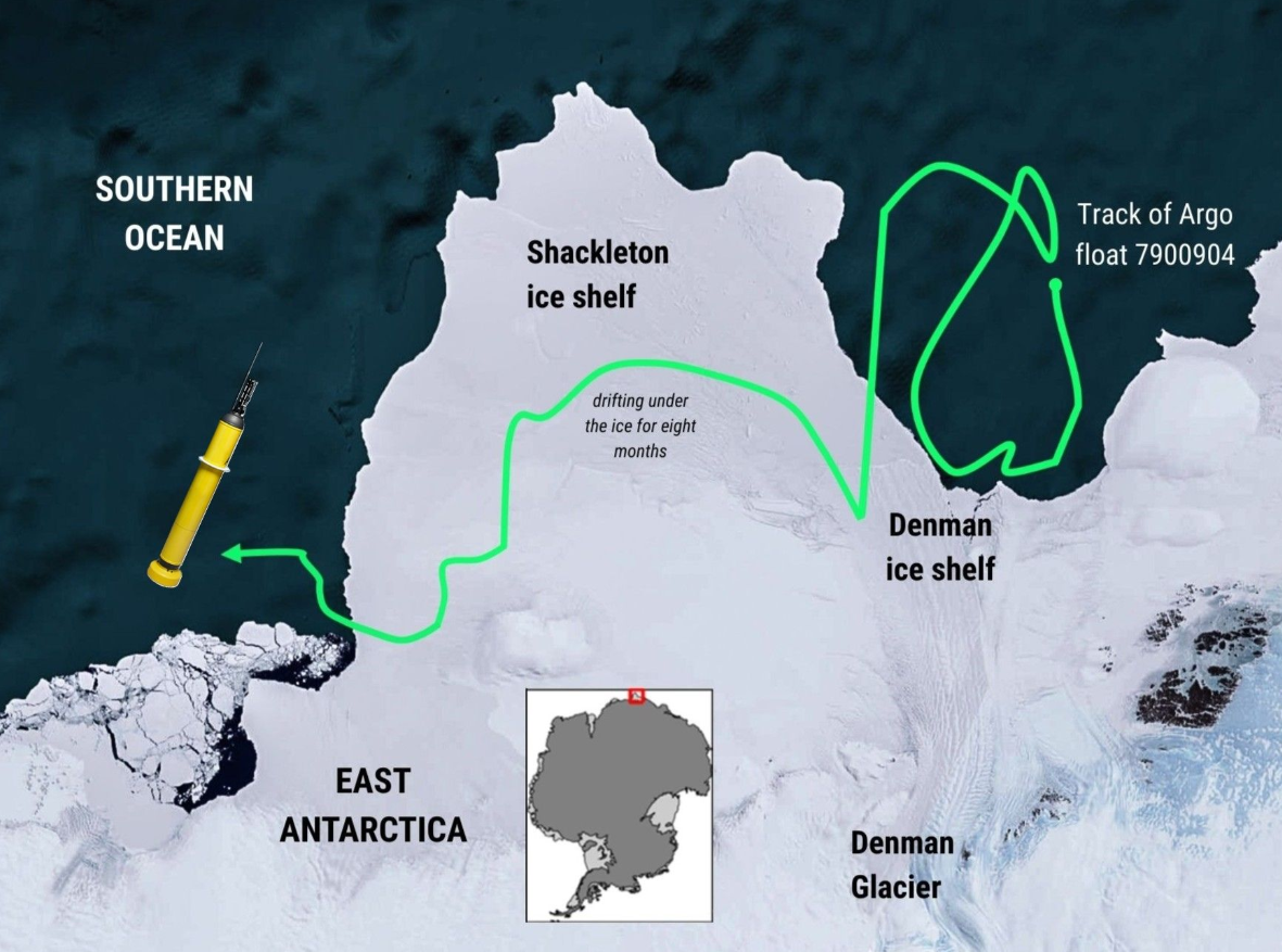 Το 2020, ερευνητές του εθνικού επιστημονικού οργανισμού της Αυστραλίας, CSIRO, έστειλαν έναν πλωτήρα Argo – ένα ρομποτικό όργανο που μετρά τη θερμοκρασία, την αλατότητα και άλλες παραμέτρους του ωκεανού – κοντά στον παγετώνα Totten στην Ανατολική Ανταρκτική.