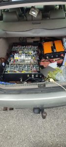 Ακολούθησε έρευνα στο όχημα που χρησιμοποιούσαν, όπου στον χώρο των αποσκευών, ο οποίος είχε διαμορφωθεί κατάλληλα, εντοπίστηκε φορητό υπολογιστικό σύστημα με πρόσβαση στο διαδίκτυο, συνδεδεμένο με πομπό κεραίας τοποθετημένο στην οροφή του αυτοκινήτου σε σχήμα «πτερυγίου καρχαρία». Το όχημα, ο ηλεκτρονικός εξοπλισμός καθώς και πέντε κινητά τηλέφωνα κατασχέθηκαν.