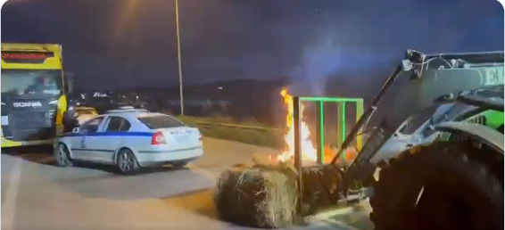 Οι αγρότες απέκλεισαν την παλιά Εθνική Οδό Θήβας – Λιβαδειάς, προχωρώντας στην καύση δεμάτων άχυρου, για να εμπόδίσουν την αστυνομία να πλησιάσει και να μην τους αφήσει να κλείσουν το δρόμο.