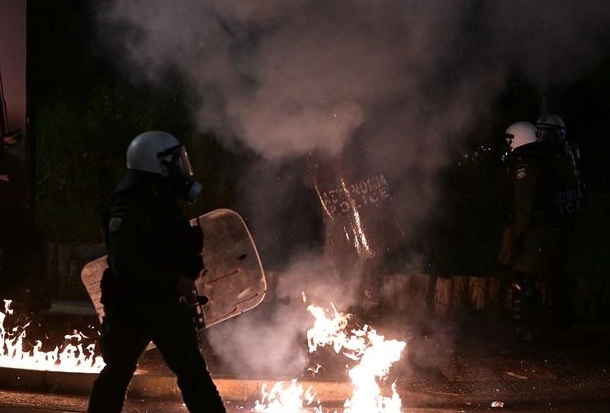 Δυνάμεις των ΜΑΤ έκαναν χρήση δακρυγόνων και χειροβομβίδων κρότου λάμψης για να διαλύσουν συγκεντρωμένους.