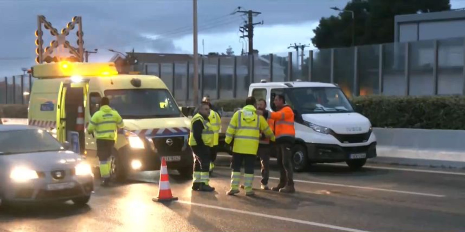 Από τα εμπορεύματα που έπεσαν στον αυτοκινητόδρομο έχουν κλείσει και τα τρία ρεύματα κυκλοφορίας καθώς συνεργεία της περιφέρειας Αττικής προσπαθούν να τα απομακρύνουν. Λόγω του τροχαίου, η κυκλοφορία διεξάγεται μόνο από τη Λωρίδα Έκτακτης Ανάγκης, με αποτέλεσμα να παρατηρείται αυξημένη κίνηση στο σημείο.