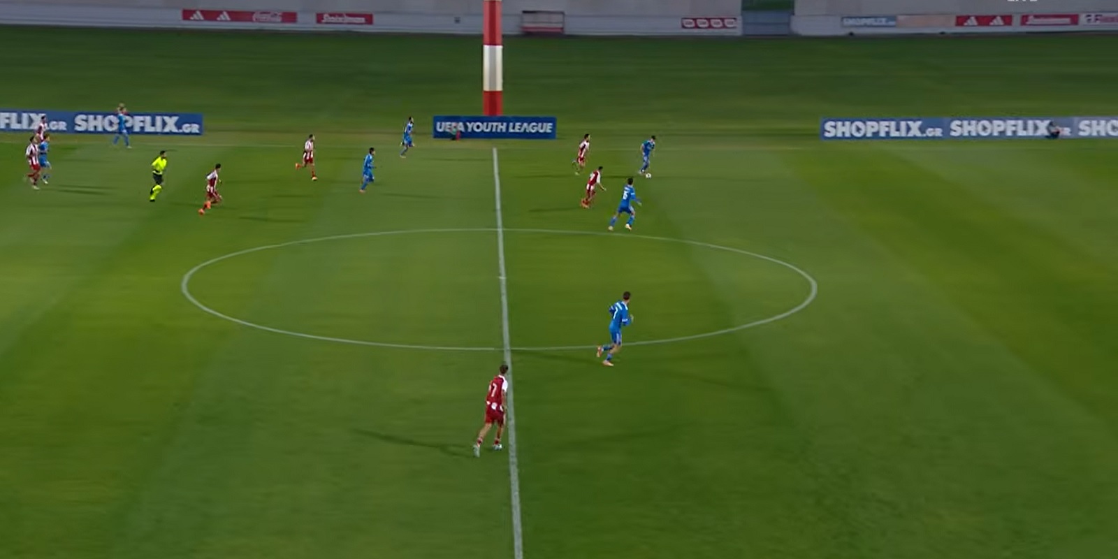 Η ενδεκάδα της Κ19 του Ολυμπιακού: Γεωργακόπουλος, Σιώζιος, Καρκατσάλης, Μίλισιτς, Αλαφάκης, Κολοκοτρώνης, Φίλης, Λιατσικούρας, Χάμζα, Τουφάκης, Βασιλακόπουλος