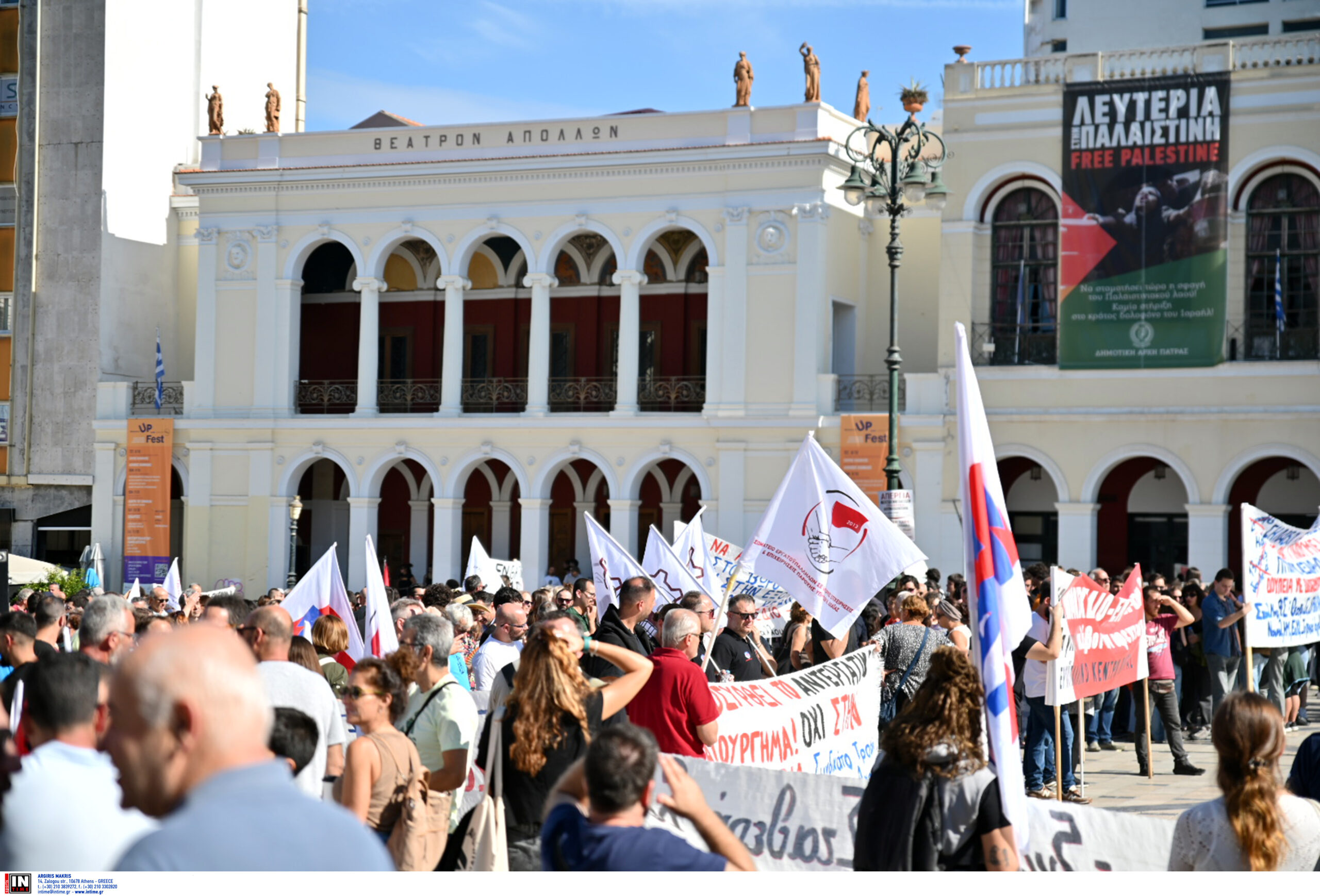 Κάτω από ισχυρή βροχόπτωση, οι διαδηλωτές πραγματοποίησαν στη συνέχεια πορεία. Ξεχωριστή πορεία έκαναν οι συγκεντρωθέντες στην Κάμαρα, φωνάζοντας συνθήματα ενάντια στο νέο εργασιακό νομοσχέδιο αλλά και αλληλεγγύης για την Παλαιστίνη.