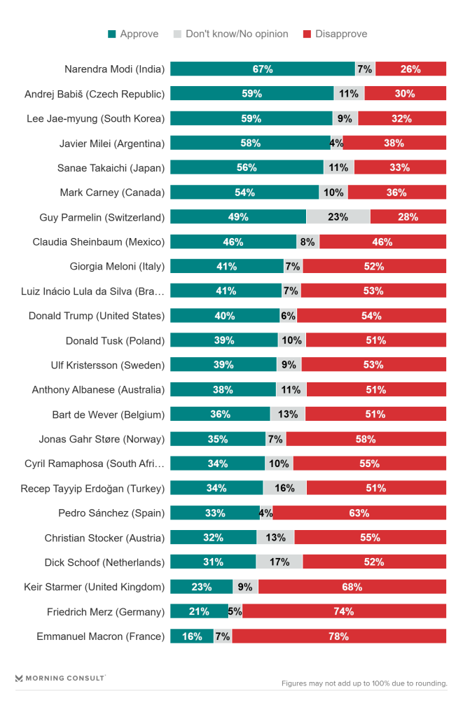 Η πολιτική γεωγραφία της Ευρώπης μεταβάλλεται βίαια, καθώς οι εκπρόσωποι του λεγόμενου ακραίου κέντρου βλέπουν τα ερείσματά τους να εξατμίζονται. Σύμφωνα με την τελευταία έρευνα της Morning Consult για το Axios, οι Κιρ Στάρμερ και Εμανουέλ Μακρόν —εμβληματικές φιγούρες μιας τεχνοκρατικής, νεοφιλελεύθερης διακυβέρνησης— καταγράφουν ιστορικά χαμηλά δημοφιλίας. Η εξέλιξη αυτή δεν αποτελεί απλώς μια συγκυριακή κάμψη, αλλά σηματοδοτεί τη στρατηγική υποχώρηση μιας ιδεολογίας που, στο όνομα της «σταθερότητας», αποξενώθηκε πλήρως από τις λαϊκές ανάγκες, αφήνοντας πίσω της ένα δυσαναπλήρωτο πολιτικό κενό.