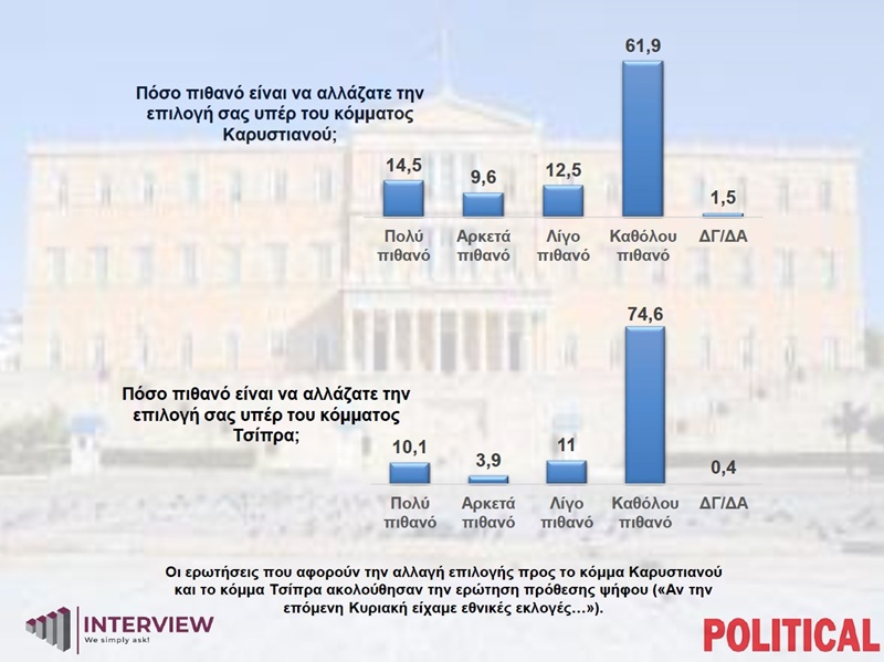 Σε όσους απάντησαν στο τι θα ψήφιζαν αν οι εκλογές γίνονταν αύριο, προστέθηκε η ερώτηση «πόσο πιθανό είναι να αλλάζατε την επιλογή σας υπέρ ενός κόμματος της Μαρίας Καρυστιανού» οι πολίτες απάντησαν ως εξής: