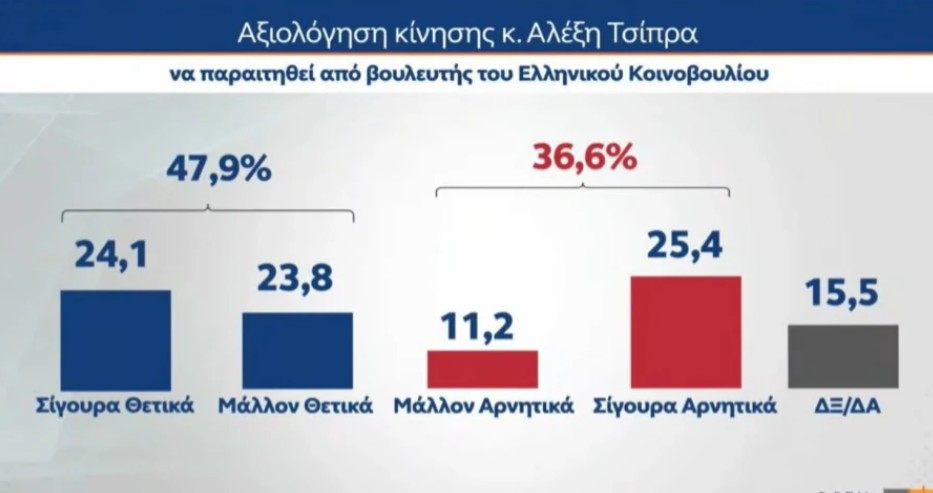Σχετικά με την κίνηση του Αλέξη Τσίπρα να παραιτηθεί από τον ΣΥΡΙΖΑ οι ερωτώμενοι εμφανίζονται μοιρασμένοι, με τη θετική άποψη να υπερέχει: