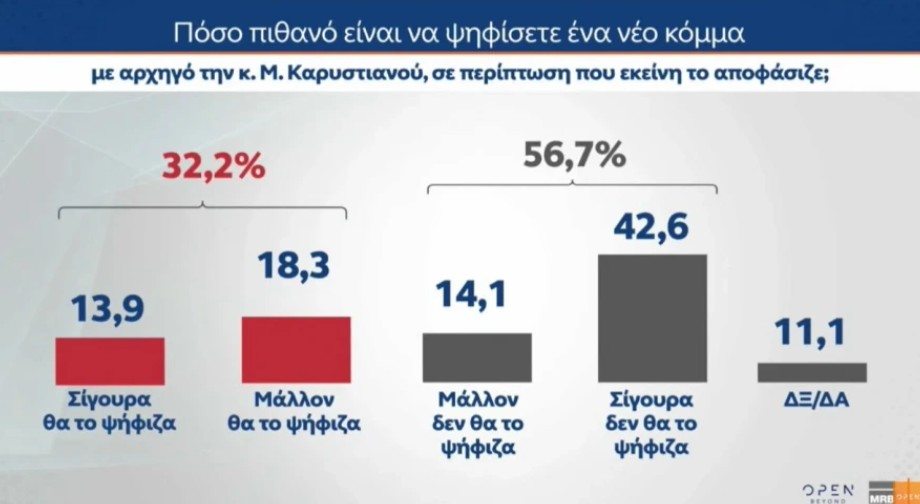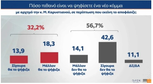 Σε ερώτηση για το πόσο πιθανό είναι να ψήφιζε κάποιος ένα κόμμα της Καρυστιανού, εάν εκείνη το αποφασιζε: