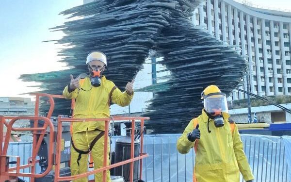 Ο καθαρισμός έγινε με εξοπλισμό της Kärcher, ενώ ο Δήμος Αθηναίων παρείχε νερό, ρεύμα, περίφραξη και πρόσβαση, εξασφαλίζοντας την προστασία του κοινού και του πρασίνου. Οι χιλιάδες γυάλινες πλάκες του γλυπτού απαιτούν ιδιαίτερη προσοχή, καθιστώντας τη διαδικασία απαιτητική αλλά και ουσιαστική για τη διατήρηση της αισθητικής και ιστορικής αξίας του μνημείου.