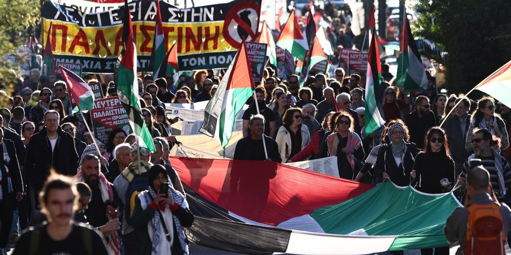 Δυναμική συγκέντρωση αλληλεγγύης προς τον παλαιστινιακό λαό πραγματοποιήθηκε σήμερα Σάββατο στην Αθήνα, με αφορμή την Παγκόσμια Ημέρα Αλληλεγγύης που είναι αφιερωμένη στον λαό της Παλαιστίνης. Στη συγκέντρωση συμμετείχαν πλήθος φορέων και συλλογικοτήτων, οι οποίες εξέφρασαν την έμπρακτη υποστήριξή τους στον αγώνα των Παλαιστινίων.