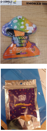 Καλούνται οι καταναλωτές που έχουν προμηθευτεί παρόμοια προϊόντα (ενδεικτικές φωτογραφίες κάτωθι), τα οποία αναφέρουν στην επισήμανσή τους την παρουσία μουσκιμόλης ή Amanita muscaria ή διατίθενται με ονομασίες όπως «Amanita Gummies», «Mushroom Muscimol Gummies» «Magic Maushroom» κ.λπ., να μην τα καταναλώσουν».