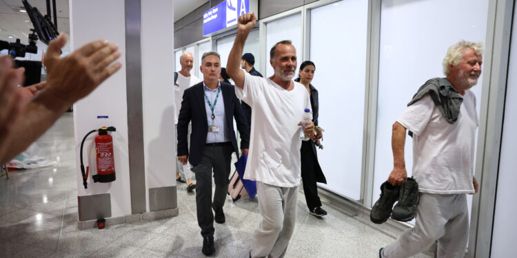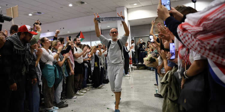 Θερμή υποδοχή επεφύλαξε πλήθος κόσμου στους 27 Έλληνες που συμμετείχαν στον στολίσκο Global Sumud, κατά την άφιξή τους στο αεροδρόμιο Ελευθέριος Βενιζέλος. Οι 27 Έλληνες μέλη του Global Sumud Flotilla προσγειώθηκαν σήμερα στο αεροδρόμιο Ελευθέριος Βενιζέλος, επιστρέφοντας στην Ελλάδα μετά από πέντε ημέρες κράτησης από τις ισραηλινές αρχές.