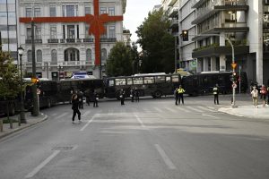 Αστυνομικές δυνάμεις είναι ακροβολισμένες στις παρόδους και διασταυρώσεις των οδών κατά μήκος της διαδρομής της πορείας. Drones της Αστυνομίας ίπτανται διαρκώς, ενώ πάνω από 5.000 αστυνομικοί έχουν κινητοποιηθεί για να εξασφαλίσουν την τάξη στο κέντρο της Αθήνας.
