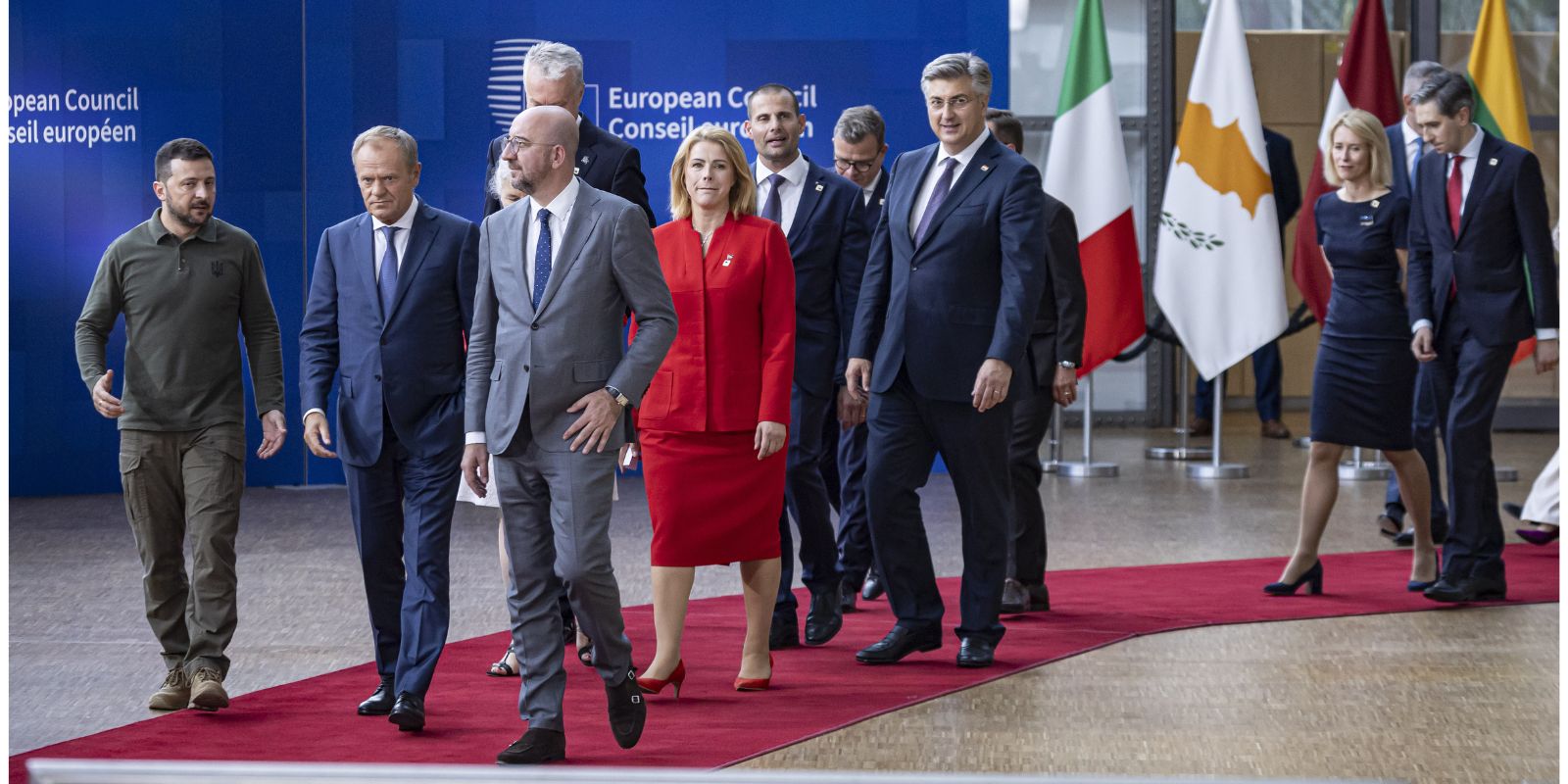 Παρουσία του Ουκρανού Προέδρου Βολοντίμιρ Ζελένσκι, κεντρικό θέμα της Συνόδου Κορυφής παραμένει η χρηματοδότηση της Ουκρανίας την επόμενη διετία. Οι αρχηγοί κρατών και κυβερνήσεων καλούνται να δώσουν συνέχεια στη δέσμευση που ανέλαβαν στο προηγούμενο Ευρωπαϊκό Συμβούλιο για την κάλυψη των πιεστικών οικονομικών, στρατιωτικών και ανθρωπιστικών αναγκών του Κιέβου.