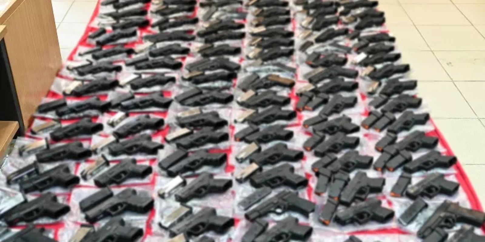 Πρόκειται για επτά άνδρες και έξι γυναίκες. Σύμφωνα με τις αρχές, στην κατοχή τους βρέθηκαν συνολικά 147 πιστόλια, 190 γεμιστήρες, καθώς και πλήθος εξαρτημάτων και τμημάτων όπλων.