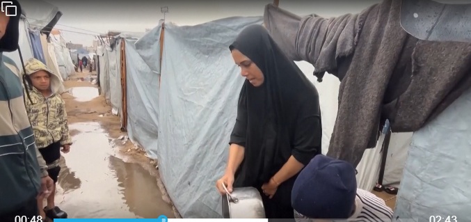 Tις δεινές συνθήκες διαβίωσης των χιλιάδων εκτοπισμένων Παλαιστινίων επιδεινώνει ακόμη περισσότερο η κακοκαιρία που χτύπησε την περιοχή, καθώς οι έντονες βοχοπτώσεις που σημειώθηκαν στη Γάζα και στη Χαν Γιούνις πλημμύρισαν τις σκηνές και τα  αυτοσχέδια καταλύματα.