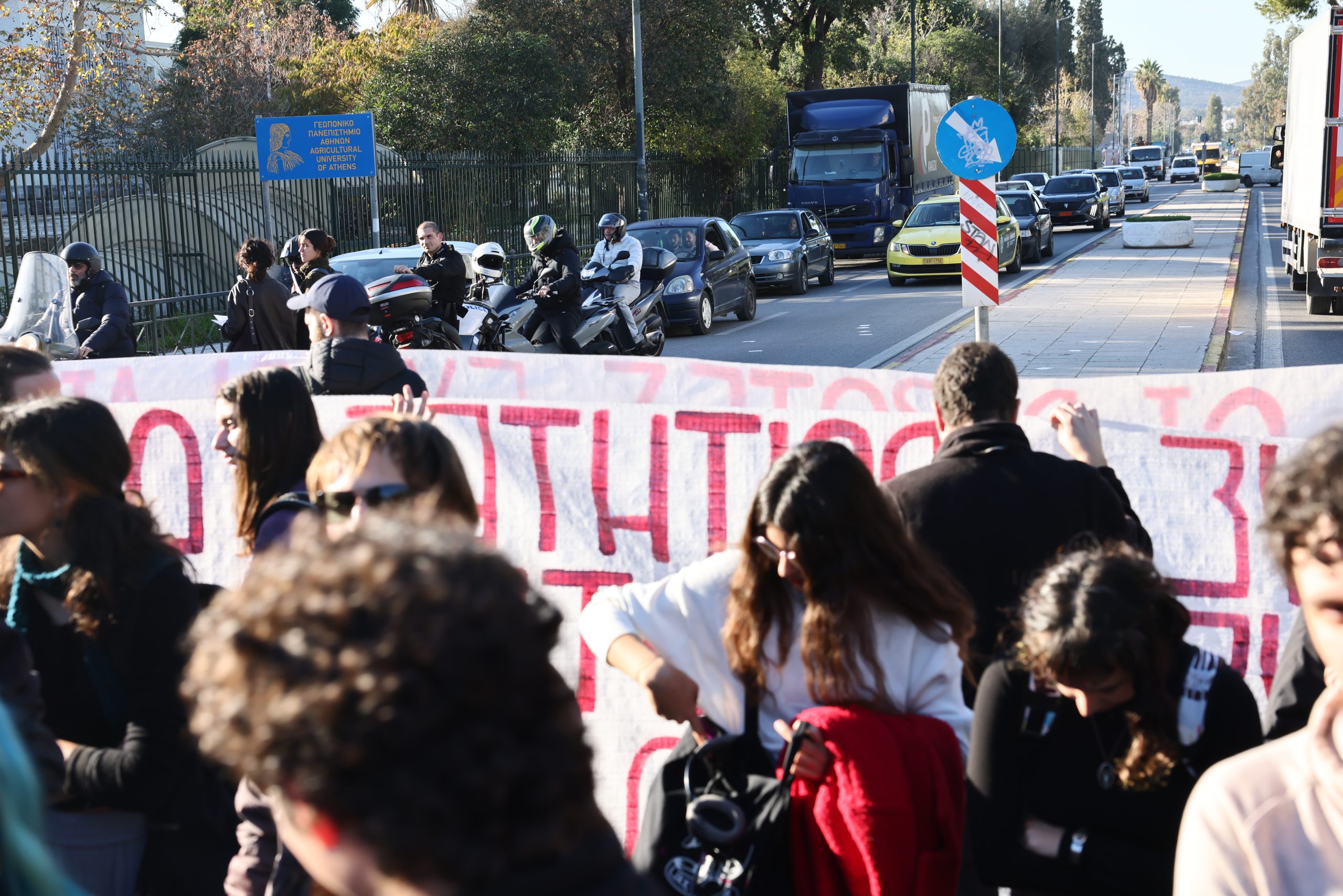 Συγκέντρωση αλληλεγγύης προς τους αγρότες πραγματοποίησαν το πρωί της Πέμπτης (11/12) οι φοιτητές του Γεωπονικού Πανεπιστημίου Αθηνών, οι οποίοι προχώρησαν σε συμβολικό αποκλεισμό της Ιεράς Οδού, ως ένδειξη συμπαράστασης.