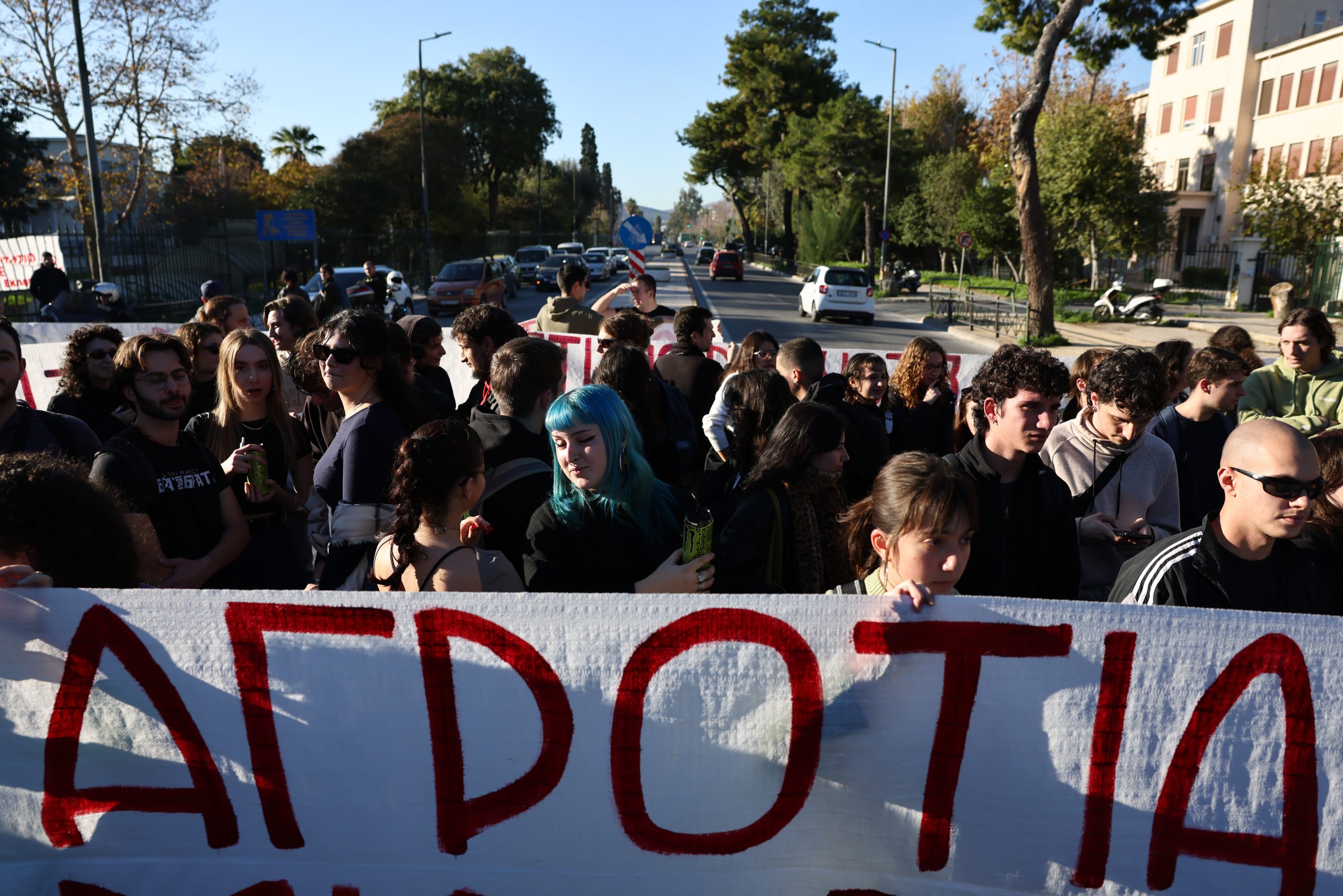 Οι φοιτητές βγήκαν στον δρόμο φωνάζοντας συνθήματα όπως «Οι αγρότες έχουν δίκιο! Φοιτητές, εργατιά, μια φωνή και μια γροθιά», και μοιράζοντας φυλλάδια στα διερχόμενα οχήματα, ενώ στο σημείο έσπευσαν διμοιρίες ΜΑΤ.