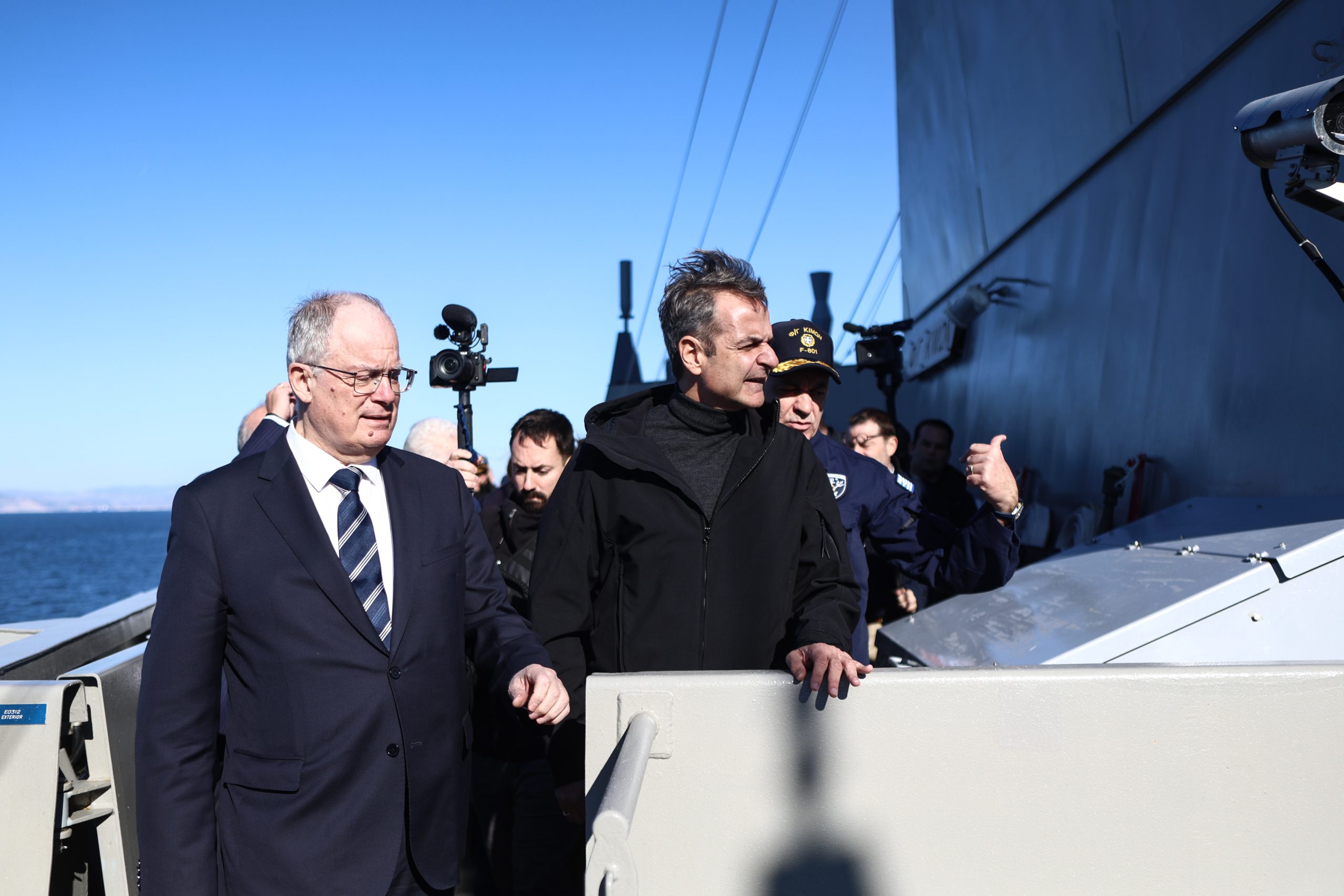 Ο πρωθυπουργός Κυριάκος Μητσοτάκης έστειλε μήνυμα από το κατάστρωμα της φρεγάτας Belharra «Κίμων», κατά την τελετή υποδοχής της στον Σαρωνικό, υπογραμμίζοντας ότι θεωρεί χρέος του να παραδώσει μια χώρα πιο ασφαλή από ό,τι την παρέλαβε.