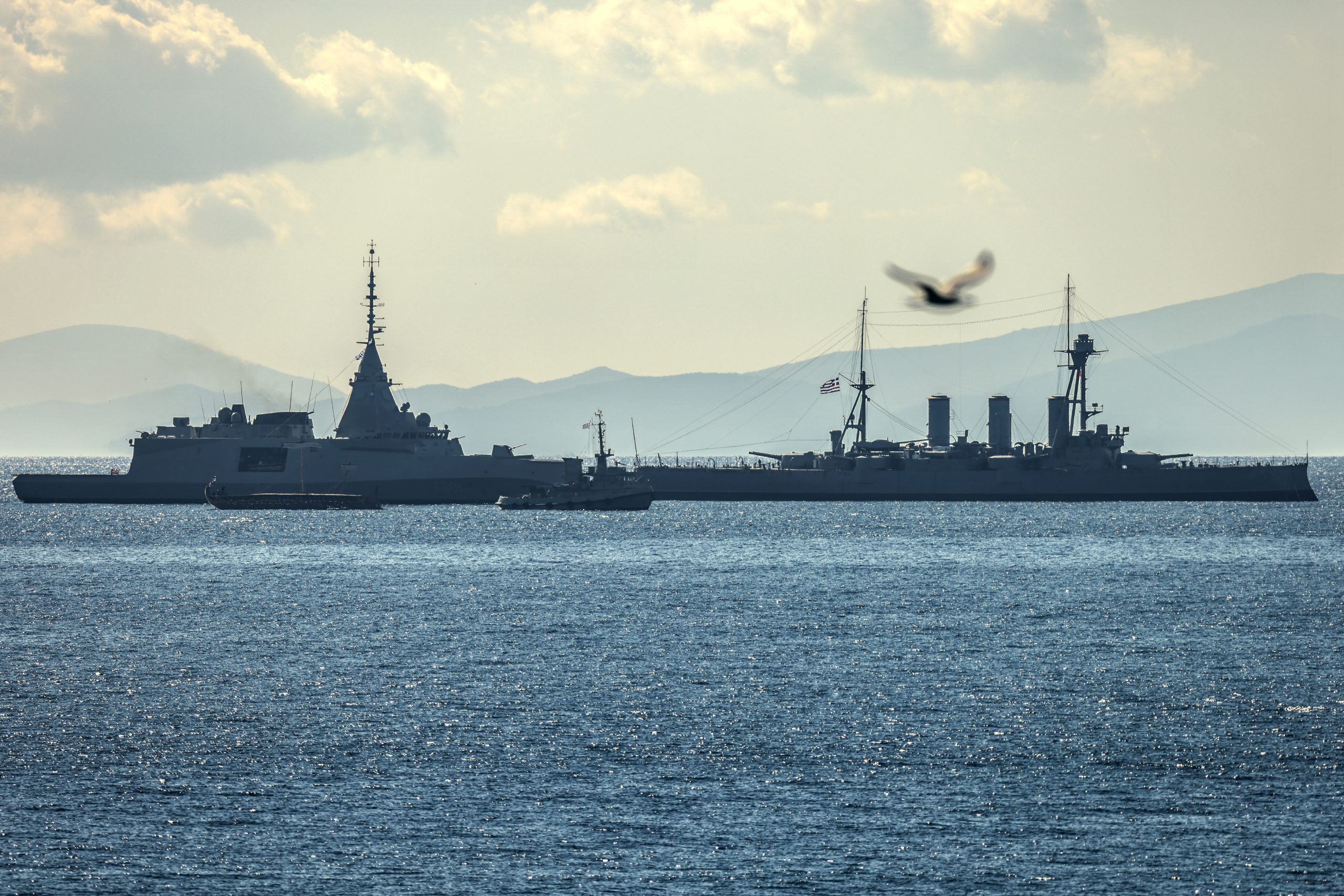 Την άφιξη της πρώτης φρεγάτας τύπου Belharra «υποδέχτηκαν» στο Σαρωνικό 8 πλοία του Πολεμικού Ναυτικού, ανάμεσά τους δύο φρεγάτες, δύο ταχέα περιπολικά κατευθυνόμενων βλημάτων, δύο κανονιοφόροι και δύο ταχύπλοα ειδικών δυνάμεων (ΣΑΠ). Ο «Κίμων» πλεύσε μέσα από αυτή τη διάταξη, ενώ στο πέρασμά του «συναντήθηκε» με το θωρακισμένο καταδρομικό «Αβέρωφ» και την ιστορική τριήρη «Ολυμπιάς», αναδεικνύοντας την παράδοση της ελληνικής ναυτικής παρουσίας ανά τους αιώνες.
