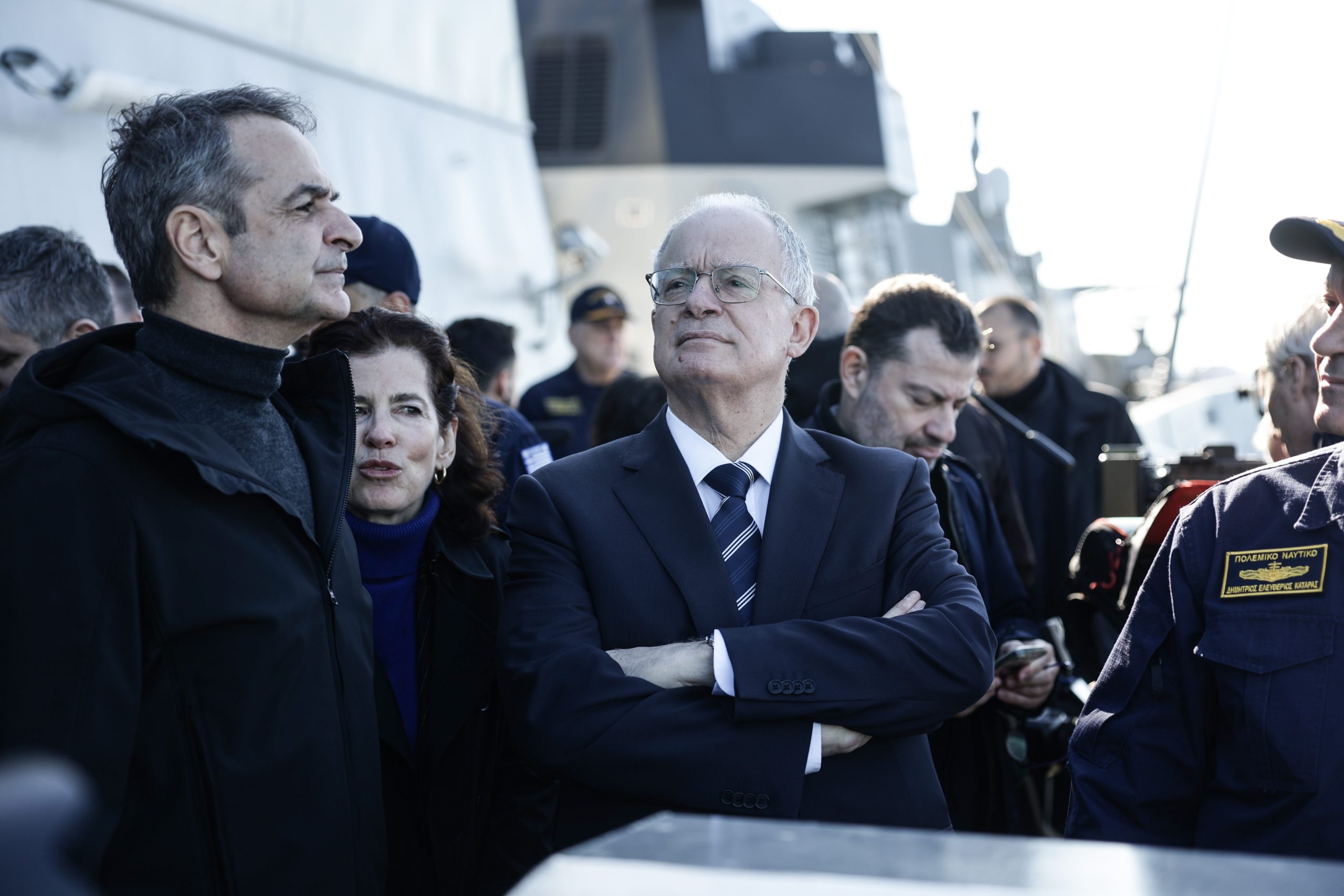 Στην φρεγάτα μετέβησαν από αέρος ο πρόεδρος της Δημοκρατίας Κωνσταντίνος Τασούλας, ο πρωθυπουργός Κυριάκος Μητσοτάκης, κι ο υπουργός Εθνικής Άμυνας, Νίκος Δένδιας, ενώ εξαίρεση αποτελεί ο ανεξάρτητος βουλευτής Ευάγγελος Αποστολάκης, ο οποίος όμως παρέστη με την ιδιότητα του πρώην αρχηγού ΓΕΕΘΑ.