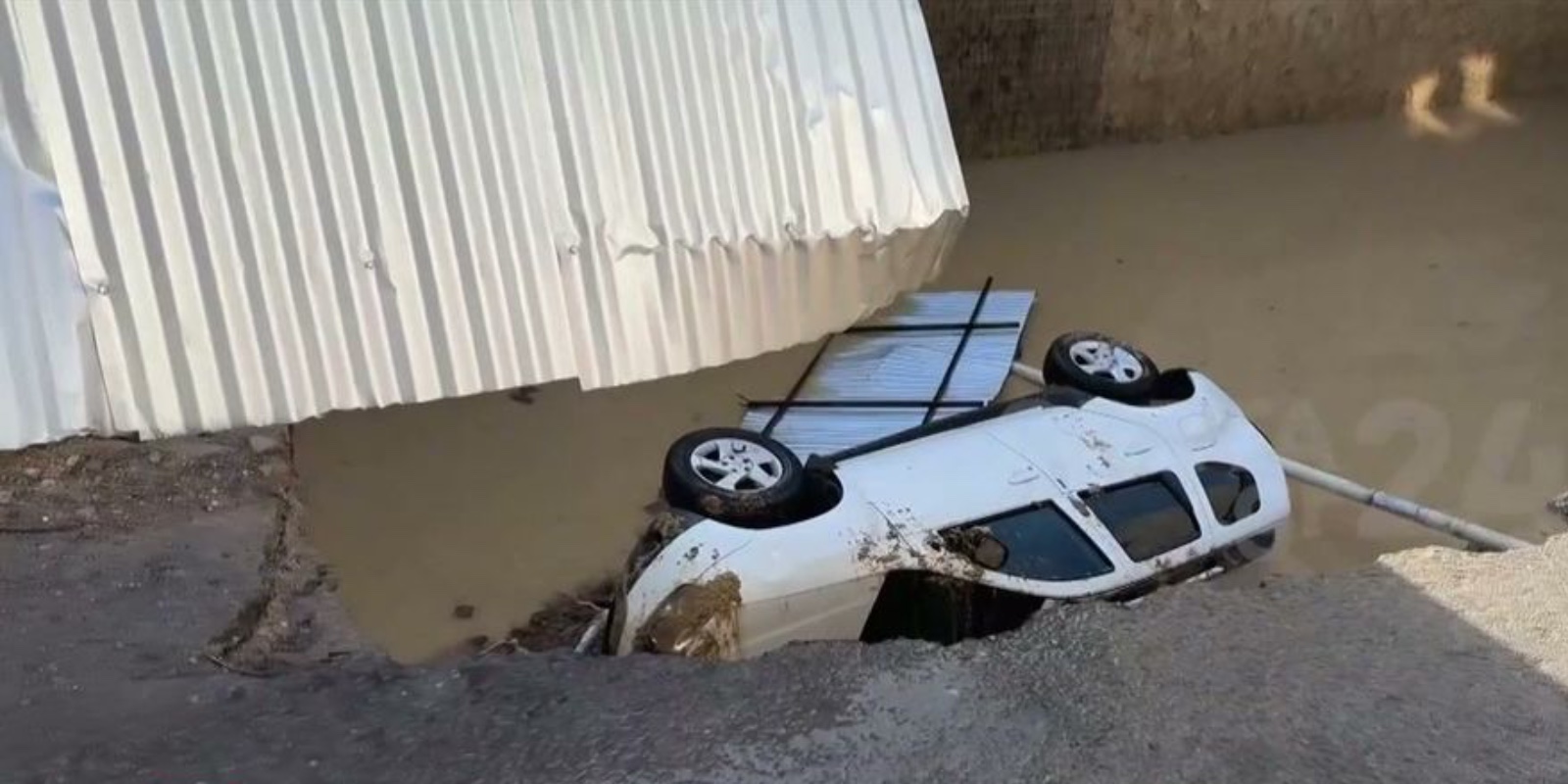 Στο μεταξύ, ένα αυτοκίνητο στην Επαρχιακή Οδό Γυθείου – Αρεόπολης στην διασταύρωση Καρβέλα ανετράπη λόγω χειμάρρου, ευτυχώς όμως ο οδηγός απεγκλωβίστηκε σώος με την βοήθεια της ανδρών της Πυροσβεστικής.