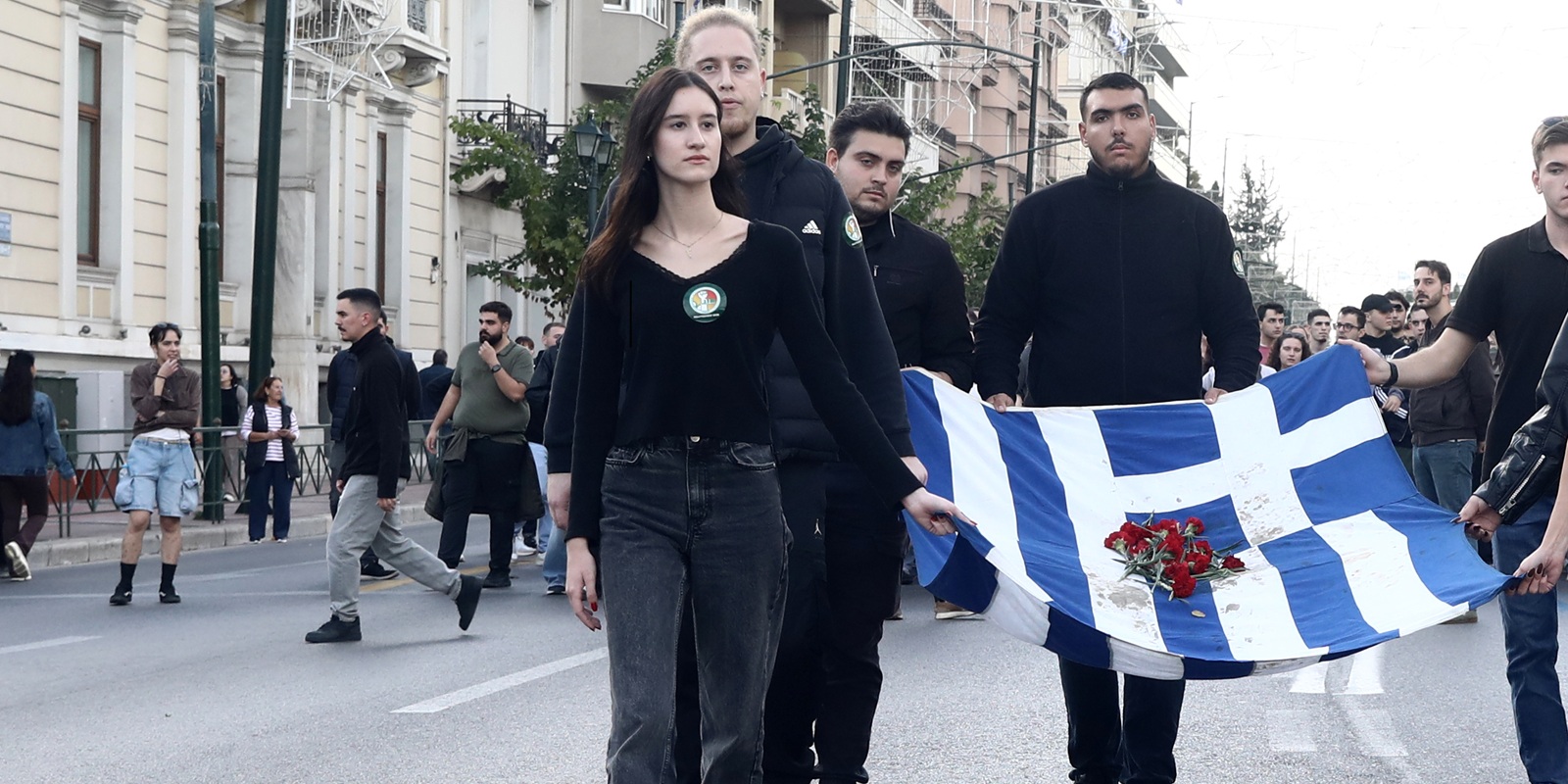 Στην κορυφή της πορείας βρέθηκε τη Δευτέρα 17 Νοεμβρίου, η κόρη της αείμνηστης προέδρου του ΠΑΣΟΚ, Φώφης Γεννηματά, Κατερίνα κρατώντας την αιματοβαμμένη ελληνική σημαία του Πολυτεχνείου.