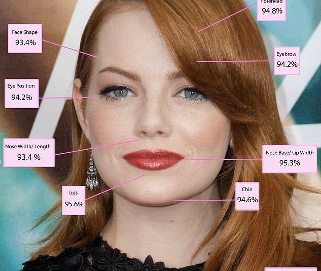 «Η Emma Stone ήταν η ξεκάθαρη νικήτρια όταν όλα τα χαρακτηριστικά του προσώπου μετρήθηκαν για φυσική τελειότητα», εξήγησε ο Δρ Julian De Silva, διευθυντής του Centre For Advanced Facial Cosmetic and Plastic Surgery στο Λονδίνο. «Πήρε την υψηλότερη βαθμολογία για τα φρύδια της (94,2%) και υψηλές βαθμολογίες σε όλες τις άλλες κατηγορίες. Έχει σχεδόν τέλεια γνάθο με σκορ 97% και όμορφα αναλογικά χείλη στο 95,6%». Άλλες σταρ με «όμορφα» πρόσωπα, σύμφωνα με τη μελέτη, είναι η Zendaya, η Beyoncé και η Margot Robbie.