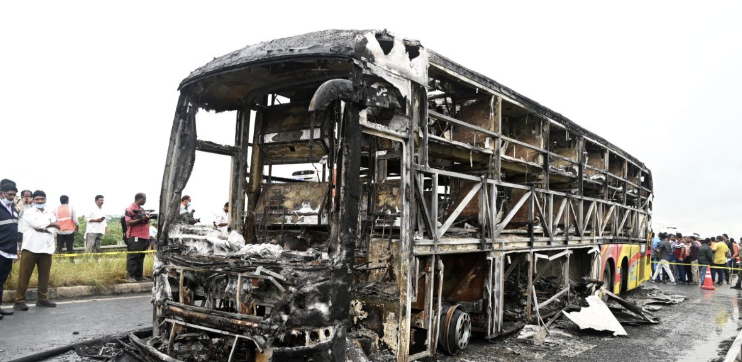 Το δυστύχημα σημειώθηκε κοντά στην περιοχή Κουρνούλ, στην πολιτεία Άντρα Πραντές. Η σύγκρουση ήταν τόσο βίαιη που το λεωφορείο πήρε φωτιά μέσα σε λίγα λεπτά, παγιδεύοντας δεκάδες επιβάτες, πολλοί από τους οποίους κοιμούνταν.