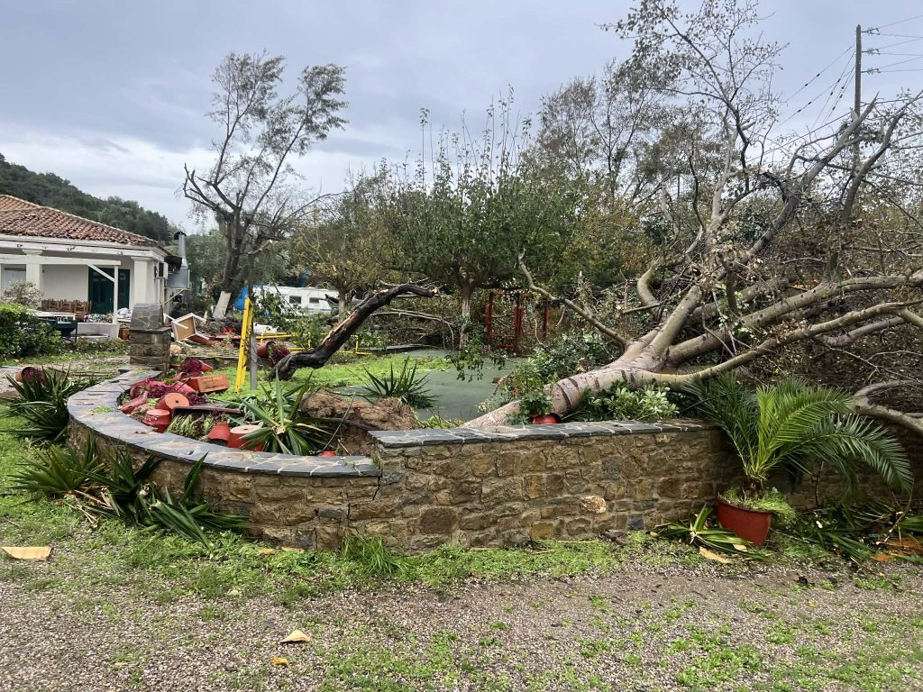 Έσπασαν τζαμαρίες καταστημάτων ενώ καταγράφηκα καταστροφές σε ξενοδοχεία και κάμπινγκ και απ΄οτις δυνατές ριπές του ανέμου δεν γλίτωσαν ούτε οι κολώνες της ΔΕΗ, σύμφωνα με την ΕΡΤ που κατέγραψε ένα σκηνικό βιβλικής καταστροφής στην περιοχή.