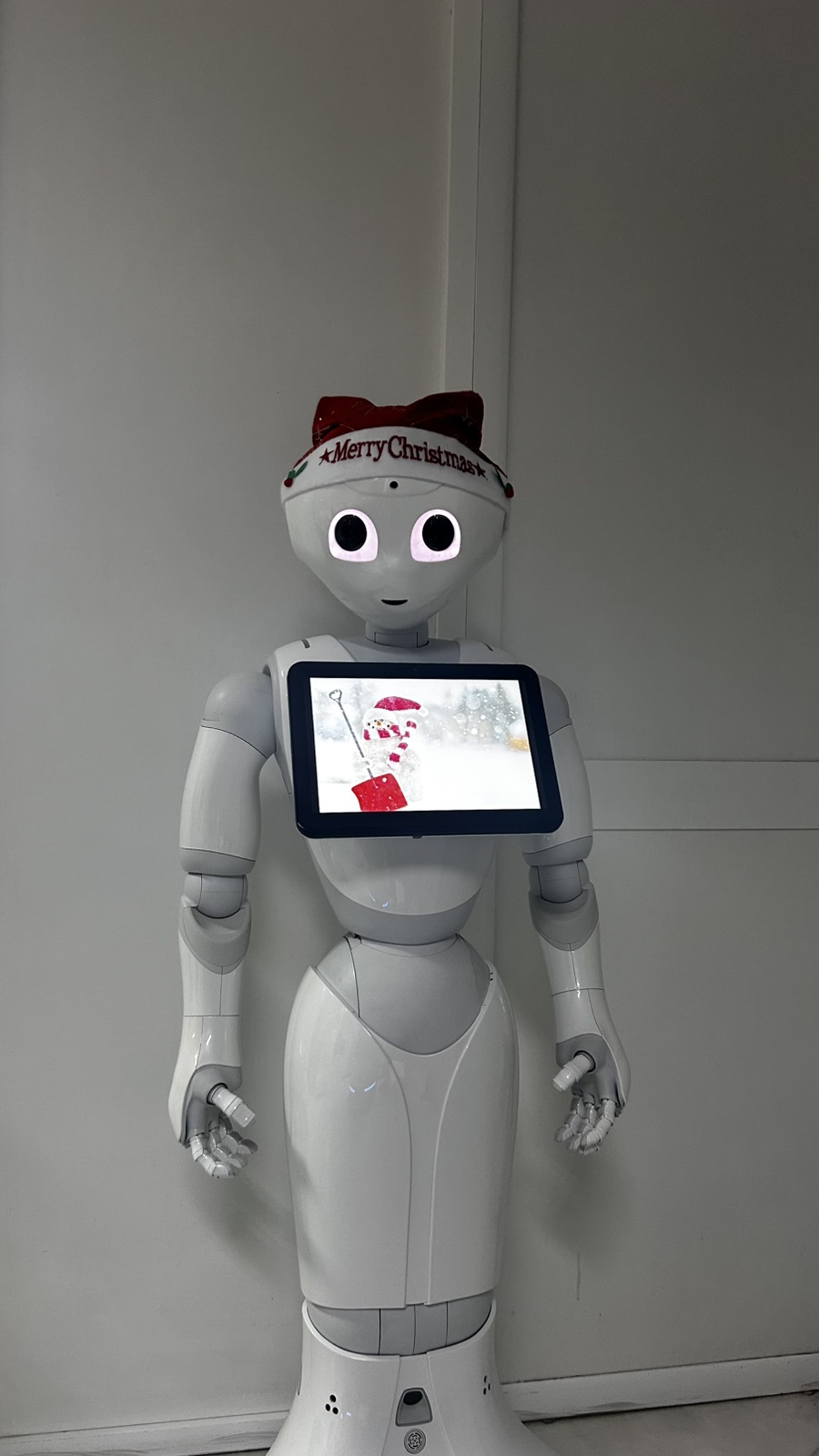 Ενώ η παρέα των θεσσαλονικιώτικων ρομπότ είναι έτοιμα να τα … πουν, κάποια άλλα έχουν αναλάβει διαφορετικούς ρόλους -πάντα σε πνεύμα γιορτών. «Είμαι ο Pepper, ο επίσημος ρομποτικός βοηθός του Αϊ-Βασίλη για την περίοδο των εορτών! Μην ανησυχείτε, ο αληθινός Αϊ-Βασίλης είναι στη θέση του, κάνει όλες τις προετοιμασίες και φορτώνει το έλκηθρο. Εγώ απλώς τον βοηθάω με τα τεχνολογικά».