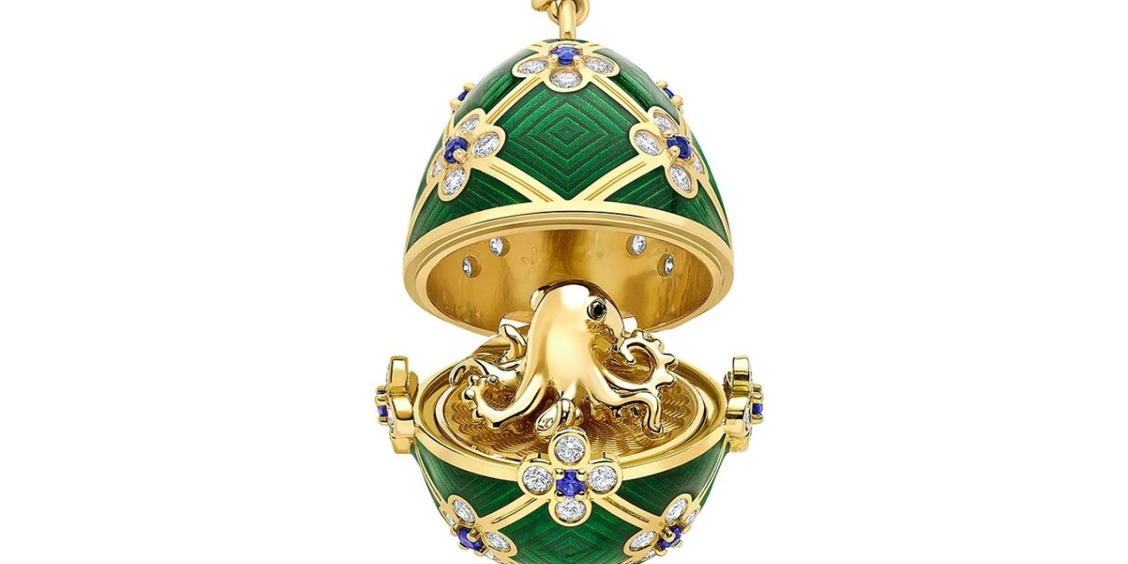 Σύμφωνα με την ιστοσελίδα του κοσμηματοπώλη, το φερόμενο ως κλεμμένο αυγό Fabergé είναι διακοσμημένο με 60 λευκά διαμάντια και 15 μπλε ζαφείρια και ανοίγει αποκαλύπτοντας ένα μικροσκοπικό χταπόδι από χρυσό 18 καρατίων. Το αυγό ονομάζεται Octopussy, εμπνευσμένο από την ομώνυμη ταινία του Τζέιμς Μποντ του 1983, που επικεντρώνεται σε μια περίτεχνη ληστεία αυγών Fabergé.