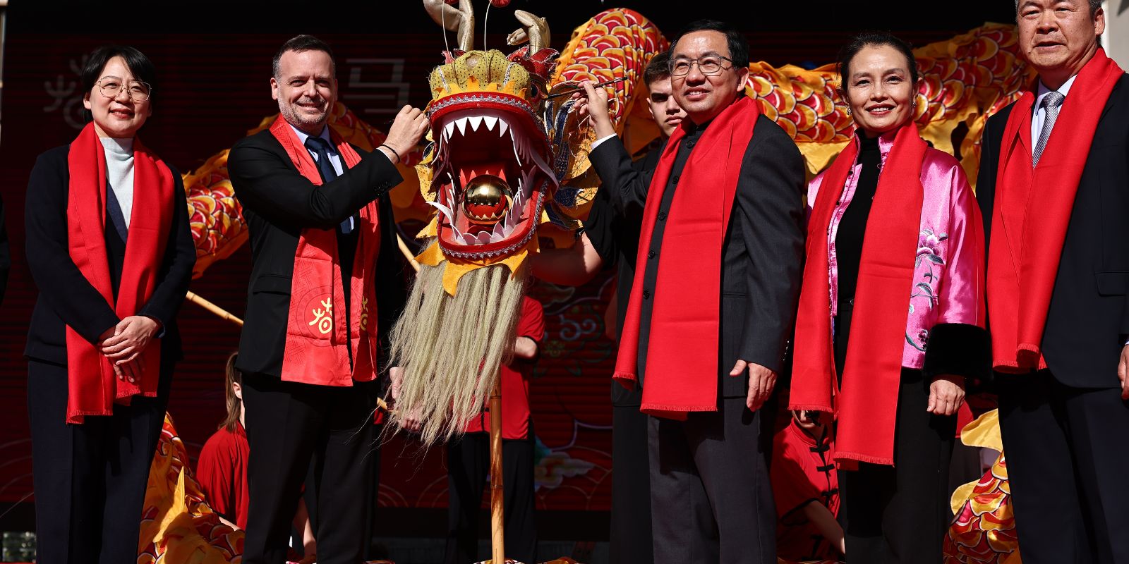 Το επίσημο μέρος ξεκίνησε στις 13:40, με τον Δήμαρχο Αθηναίων Χάρη Δούκα να υποδέχεται τον Πρέσβη της Κίνας Fang Qiu στο Δημαρχείο. Το πρόγραμμα περιλαμβάνει παρέλαση, τον παραδοσιακό χορό του δράκου και ομιλίες επισήμων, ενισχύοντας τον συμβολισμό της πολιτιστικής σύνδεσης και της κοινής παρουσίας στην καρδιά της πόλης.