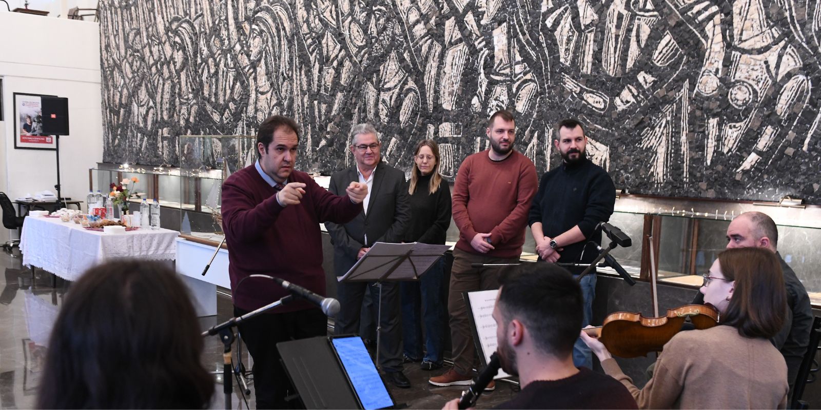 «Χρόνια πολλά, καλή δύναμη σε όλους και όλες», συνέχισε ευχαριστώντας ιδιαίτερα «την θαυμάσια χορωδία της ΚΝΕ, που είπε σήμερα πολλά κάλαντα από την πατρίδα μας, βέβαια και τα αγωνιστικά κάλαντα, με την καθοδήγηση, τη διδασκαλεία του αξιότιμου συντρόφου, φίλου, αγωνιστή, μαέστρου, δρ Χρήστου Κολοβού». Ο κ. Κουτσούμπας πρόσφερε δώρα στον μαέστρο και στα μέλη της χορωδίας της ΚΝΕ.