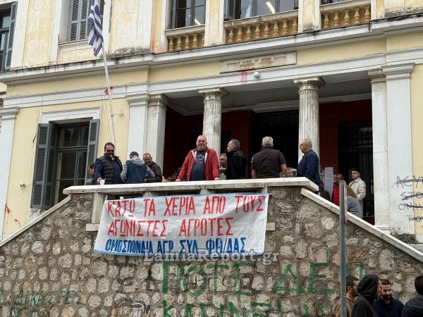 Εκεί υπήρχε ήδη συγκεντρωμένο πλήθος από το Εργατικό Κέντρο Λαμίας καθώς επίσης και από άλλα σωματεία που διαμαρτύρονται για την ποινικοποίηση των κινητοποιήσεων των ανθρώπων του πρωτογενούς τομέα.