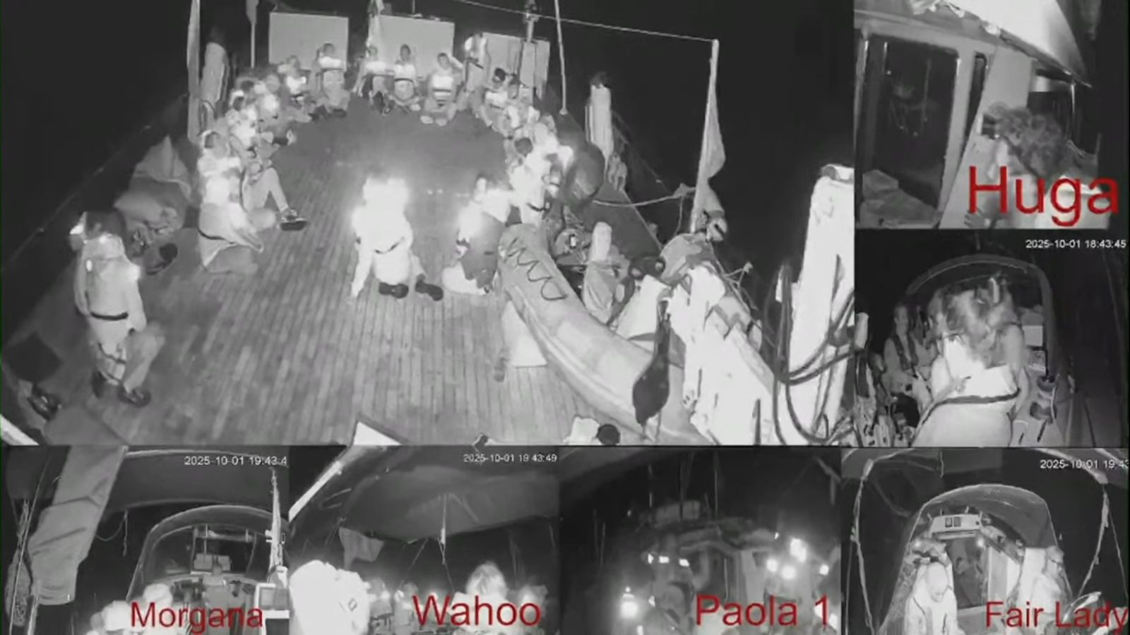 Συγκινητικά βίντεο μέσα από τα πλοία του στόλου που απειλούνται από την ισραηλινή επιδρομή, με ακτιβιστές να κάνουν το σήμα της νίκης, να φωνάζουν συνθήματα υπέρ της Παλαιστίνης και να τραγουδάνε.