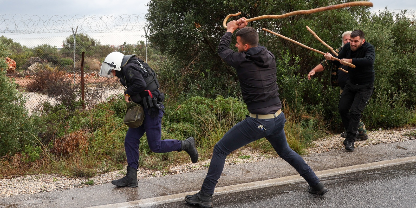 Κατά τη διάρκεια της «μάχης», οι μόνοι παρόντες ήταν οι Κρητικοί αγρότες, ενώ αστυνομικοί δεν εμφανίζονται πουθενά στα βίντεο.