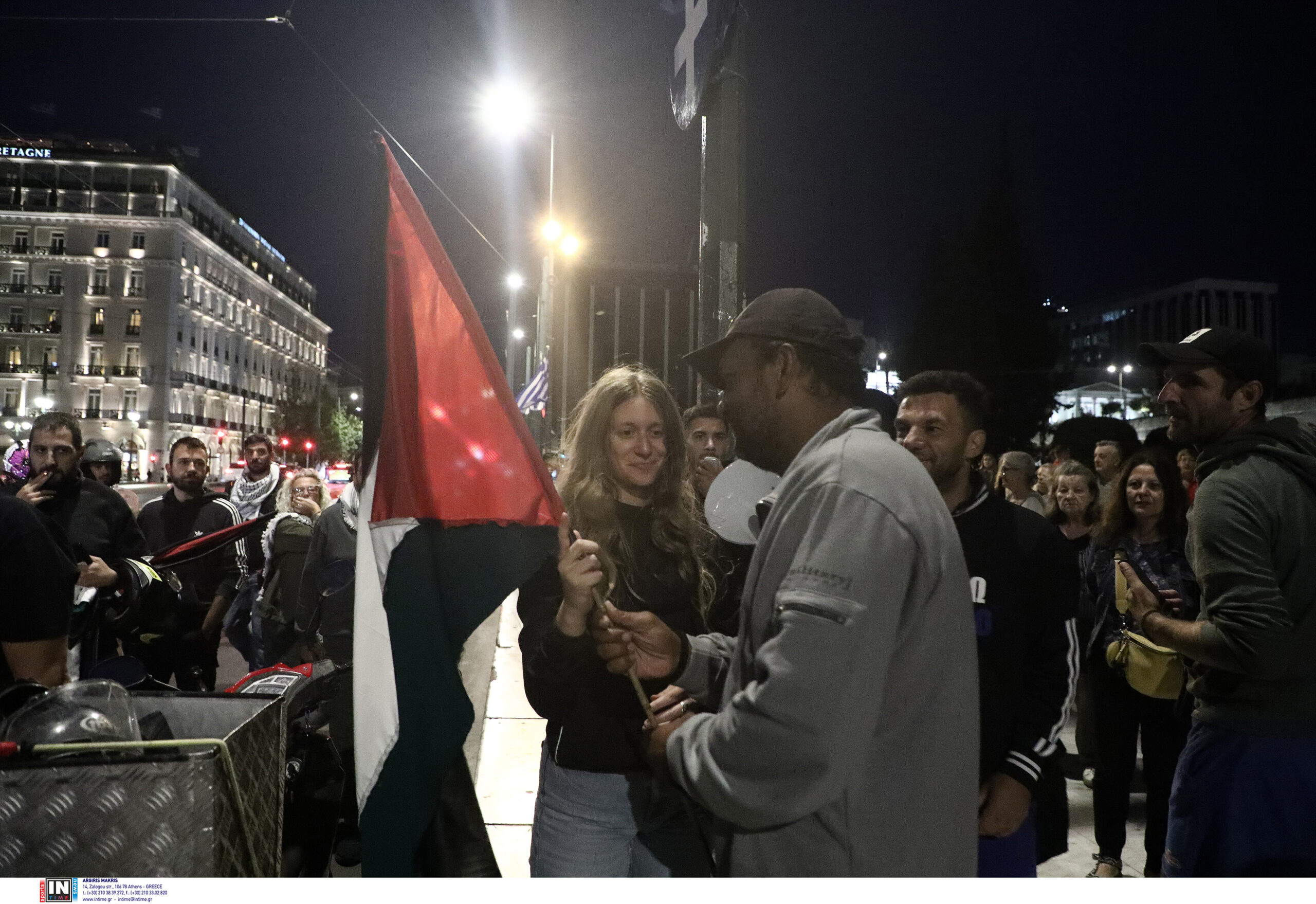 Πλήθος κόσμου συγκεντρώθηκε στο Σύνταγμα και έξω από το ΥΠΕΞ ως απάντηση στην αναχαίτιση του στολίσκου Global Sumud Flotilla, από το Ισραήλ.