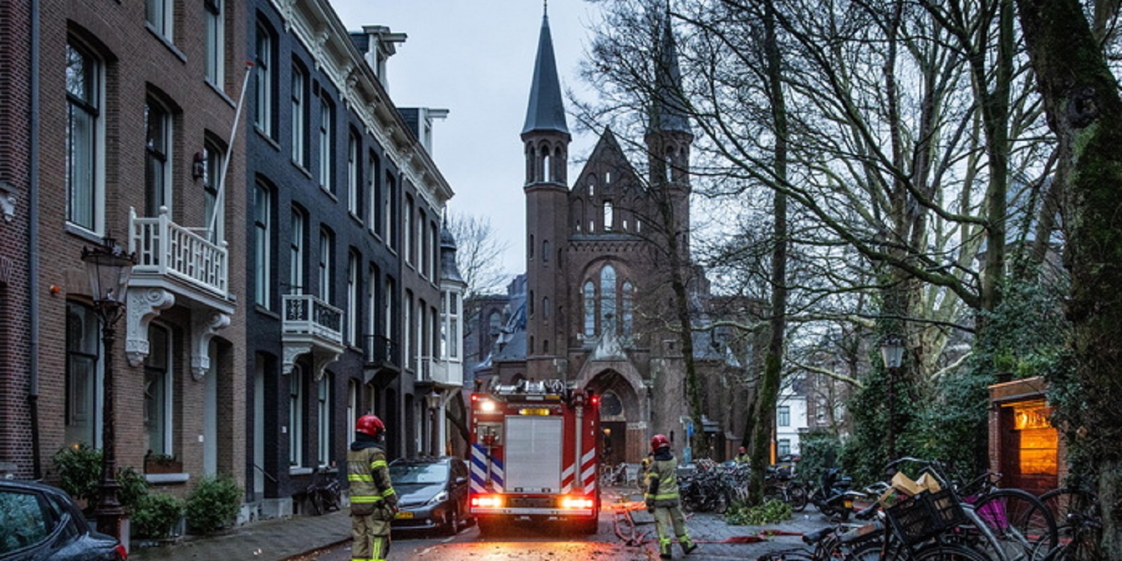 Ο πύργος ύψους 50 μέτρων κατέρρευσε και η στέγη υπέστη σοβαρές ζημιές, σύμφωνα με τις αρχές του Άμστερνταμ.