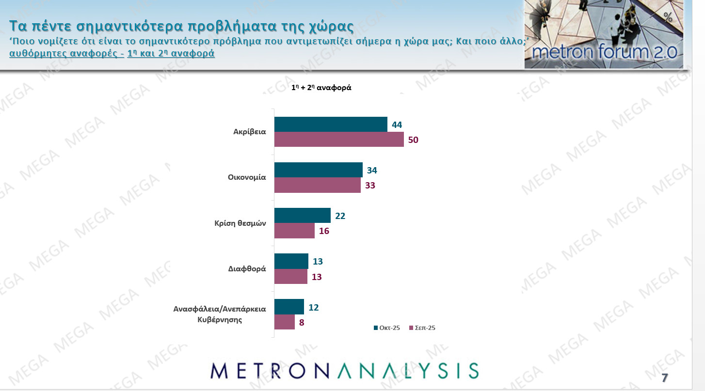 Διάτρητοι οι θεσμοί όπως η Δικαιοσύνη θα πει το 75% και το εντυπωσιακό 78% θα δηλώσει απόγνωση για την οικονομία, τους μισθούς που δεν φθάνουν, την ακρίβεια, τους φόρους.