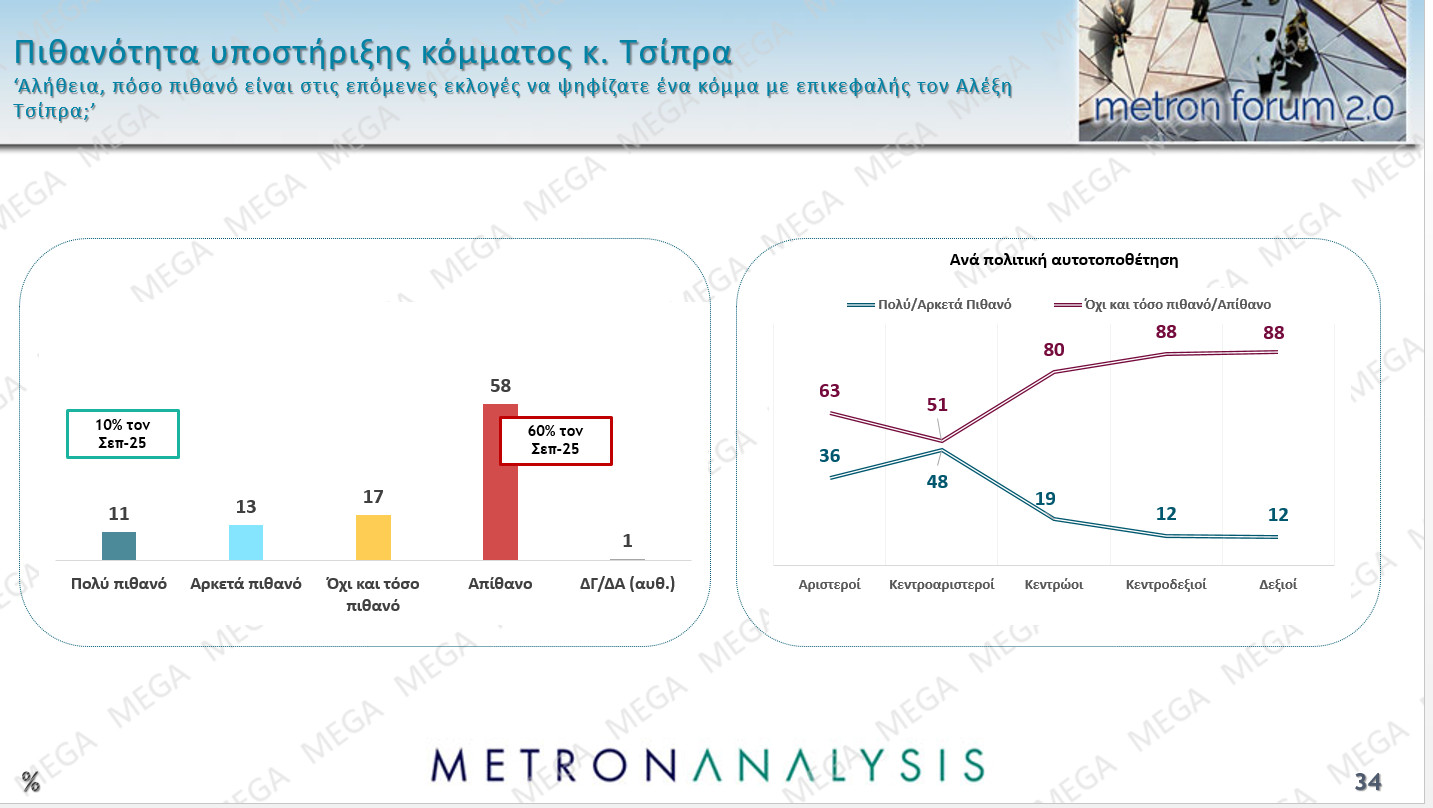 Το 24% είναι πολύ πιθανό έως αρκετά πιθανό να ψήφιζε ένα κόμμα με επικεφαλής τον Αλέξη Τσίπρα. Και να τον έβαζε σε τροχιά διακυβέρνησης.