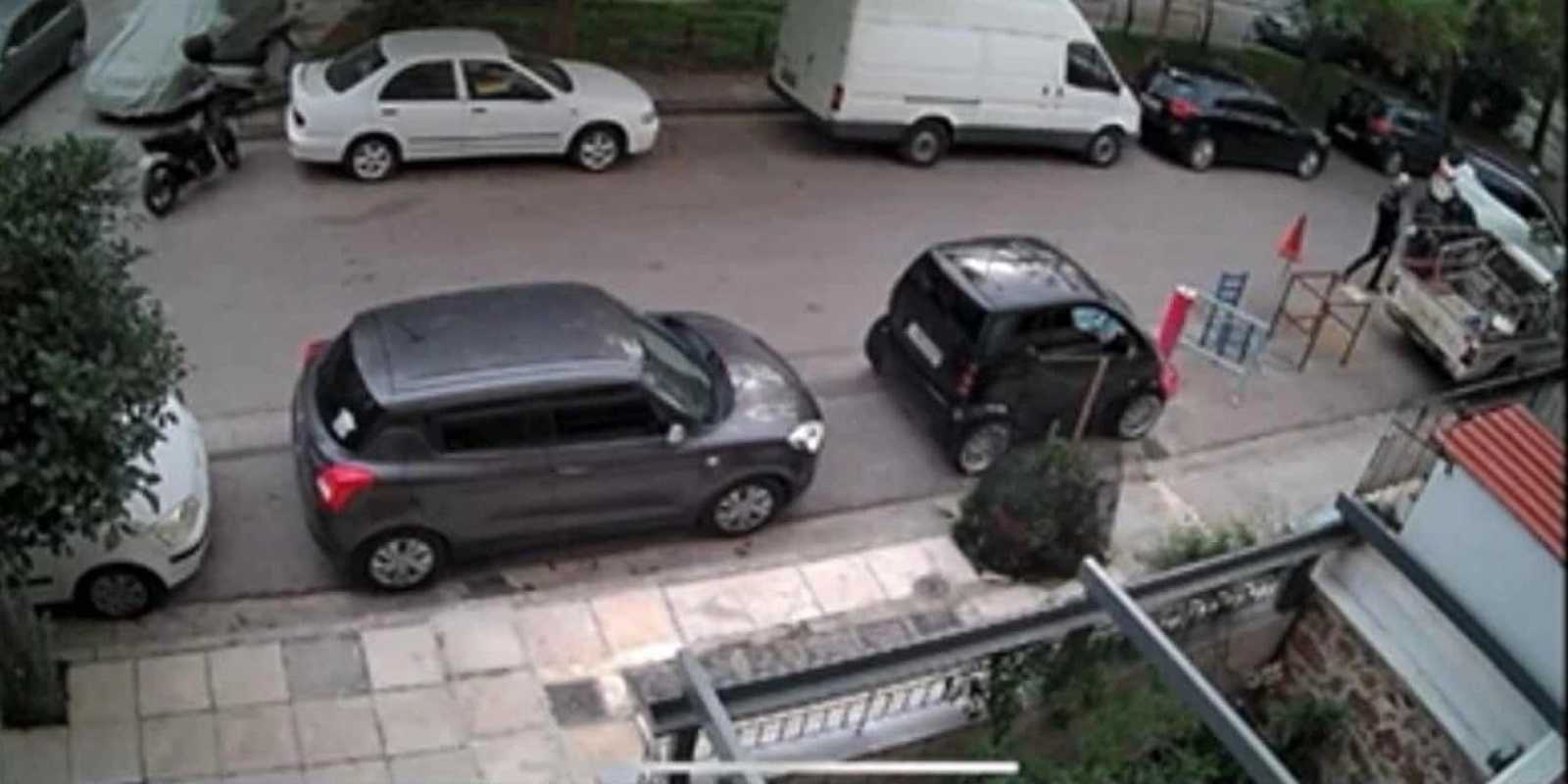 Στο βίντεο ντοκουμέντο του MEGA καταγράφεται το αυτοκίνητο που οδηγεί ο 58χρονος να μπαίνει την οδό Σουλιέ στον Νέο Κόσμο. Ο 29χρονος, αντιλαμβανόμενος πως το θύμα έχει εγκλωβιστεί, σταθεροποιεί με ψυχραιμία την μοτοσικλέτα και τρέχει προς το παράθυρο του οδηγού.