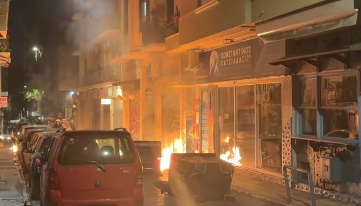 Και φωτιές σε κάδους απορριμμάτων στην πλατεία