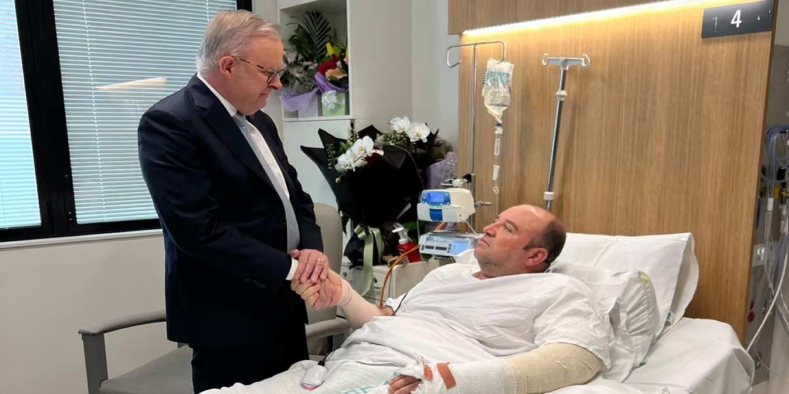 Ο πρωθυπουργός της Αυστραλίας Άντονι Αλμπανέζι επισκέφθηκε στο νοσοκομείο τον «ήρωα» της παραλίας Μπόνταϊ, τον Άχμεντ αλ Άχμεντ, ο οποίος επενέβη για να σταματήσει έναν από τους δράστες της πιο φονικής επίθεσης με πυροβόλα όπλα που έχει γνωρίσει η χώρα εδώ και δεκαετίες.