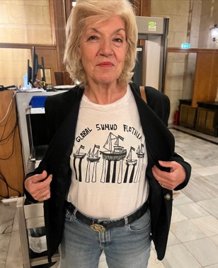 Με το δικό της τρόπο η Σία Αναγνωστοπούλου στέκεται δίπλα στην ελληνική αποστολή που βρίσκεται υπό ομηρία μετά το ρεσάλτο των ισραηλινών δυνάμεων, στο στολίσκο.