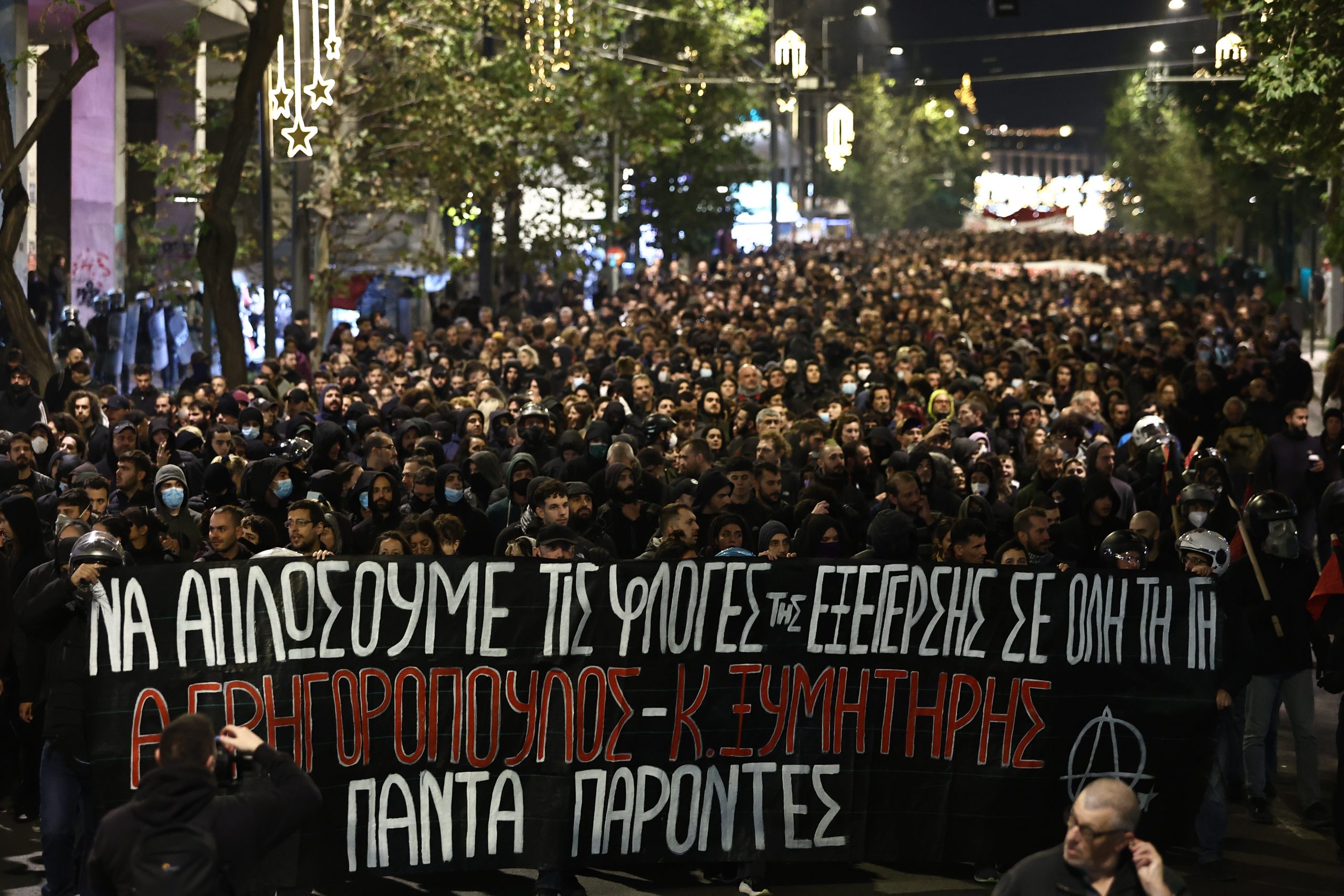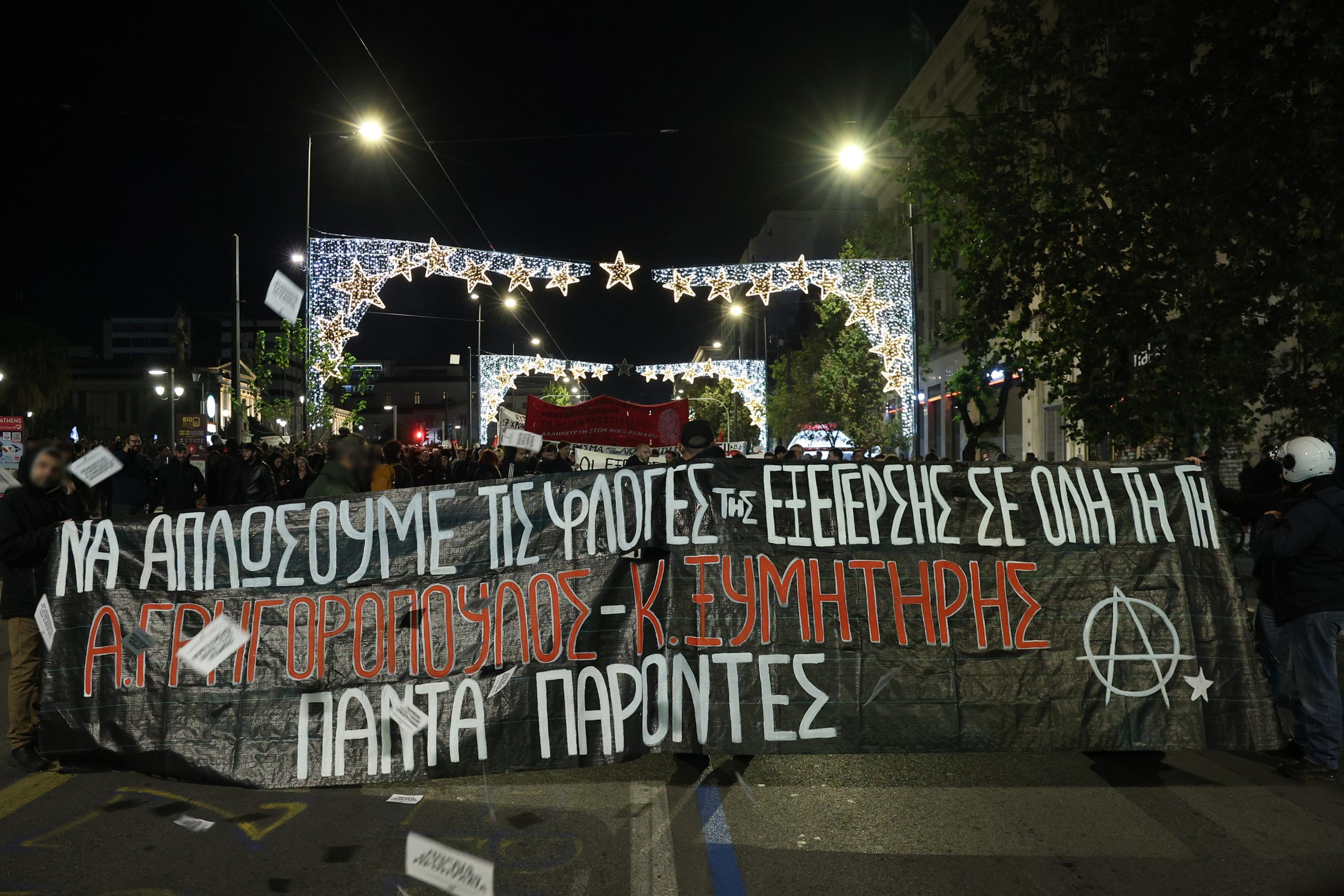 Μετά την μαθητική – φοιτητική πορεία η οποία διεξήχθη το πρωί του Σαββάτου 6/12 πλήθος κόσμου δίνει το παρών και διαδηλώνει στο κέντρο της Αθήνας στα Προπύλαια, στη μνήμη του Αλέξανδρου.