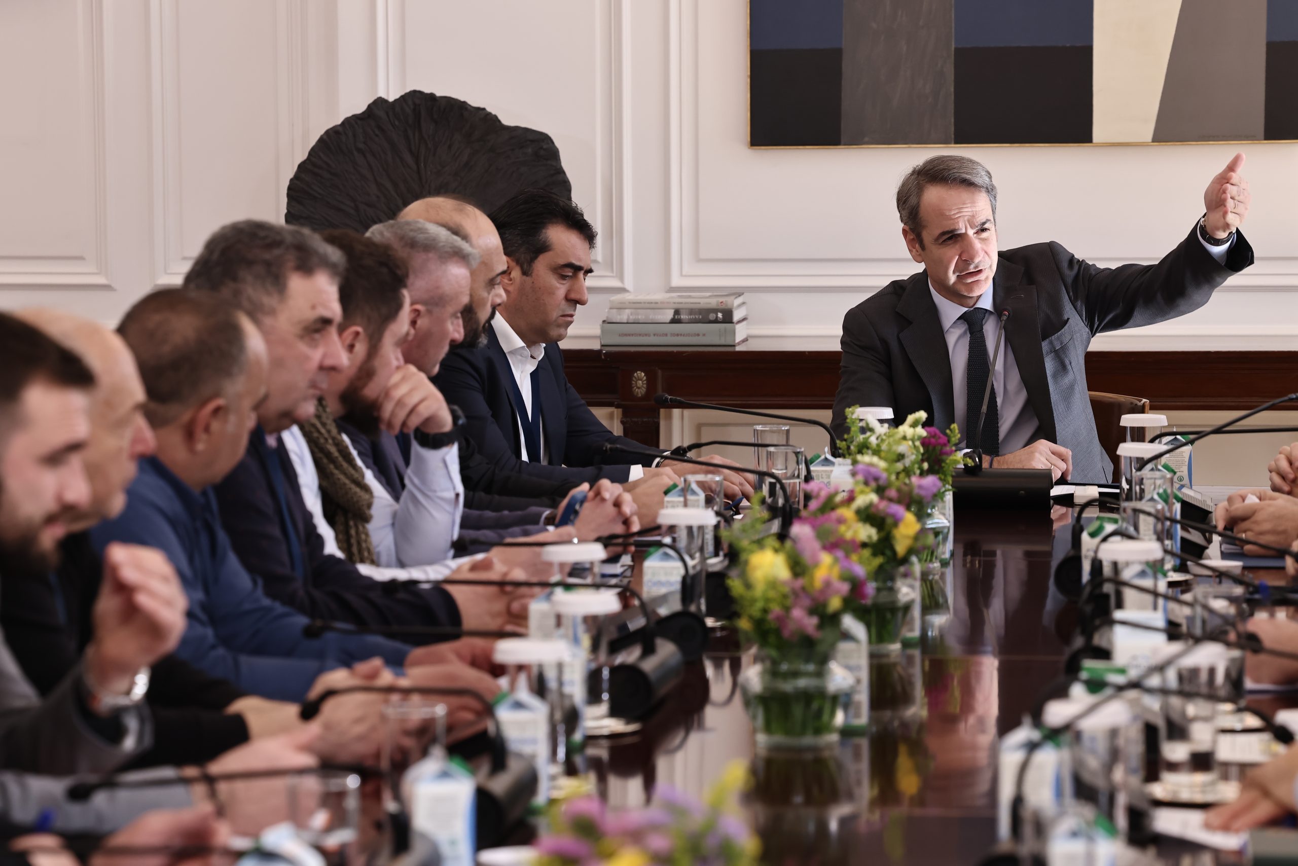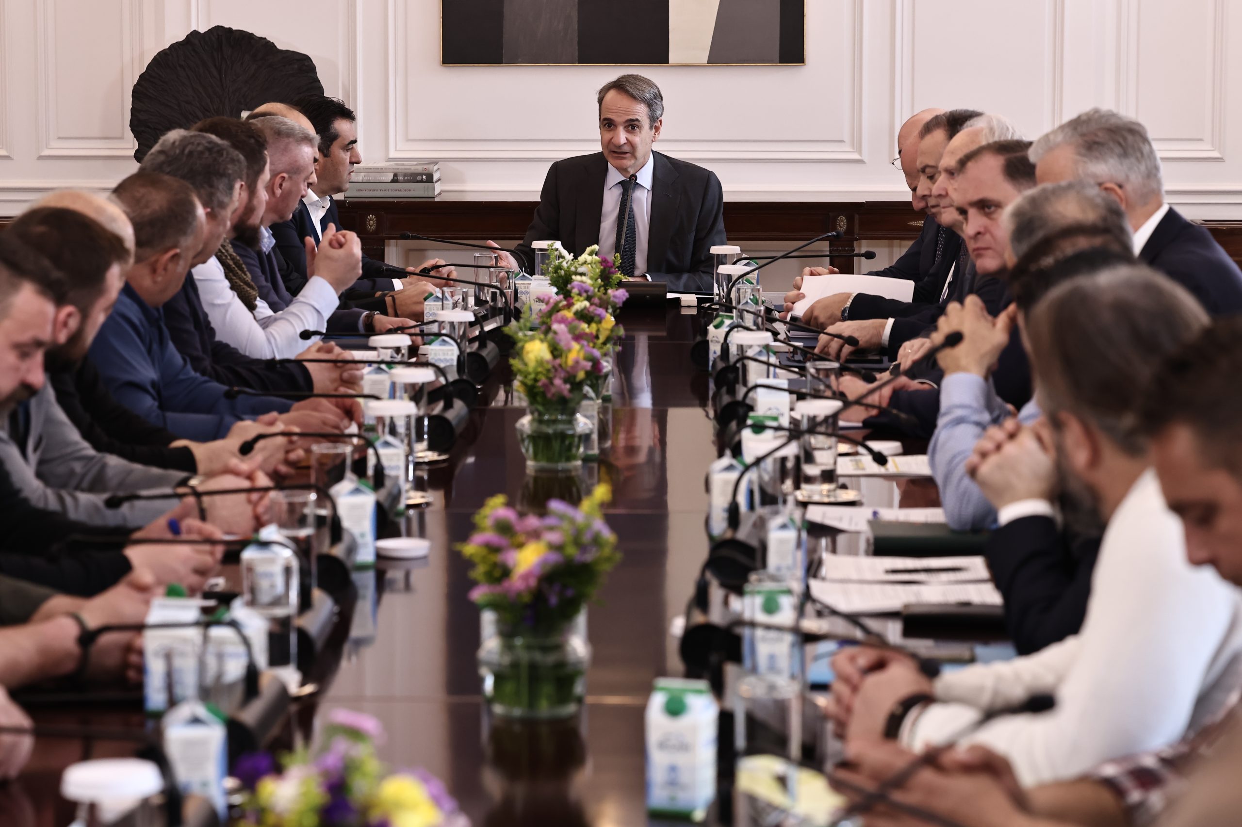 Ολοκληρώθηκε η συνάντηση του Κυριάκου Μητσοτάκη με τους κτηνοτρόφους στο Μέγαρο Μαξίμου, με τον πρωθυπουργό να ισχυρίζεται πως η κυβέρνηση θα σταθεί δίπλα στους παραγωγούς.