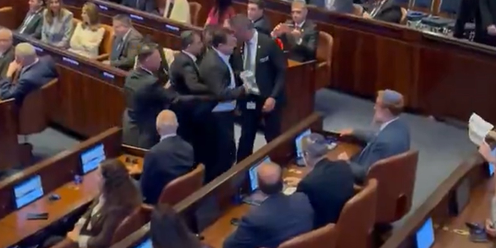 «Αναγνωρίστε την Παλαιστίνη» έγραφαν τα πλακάτ των δύο αριστερών βουλευτών, τους οποίους η ασφάλεια του κοινοβουλίου έβγαλε σχεδόν «σηκωτούς» εκτός αίθουσας.